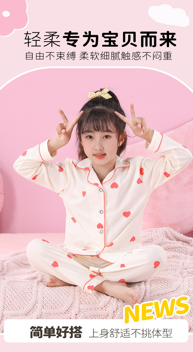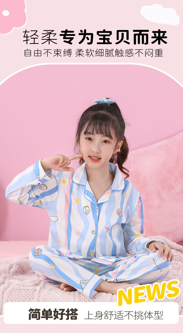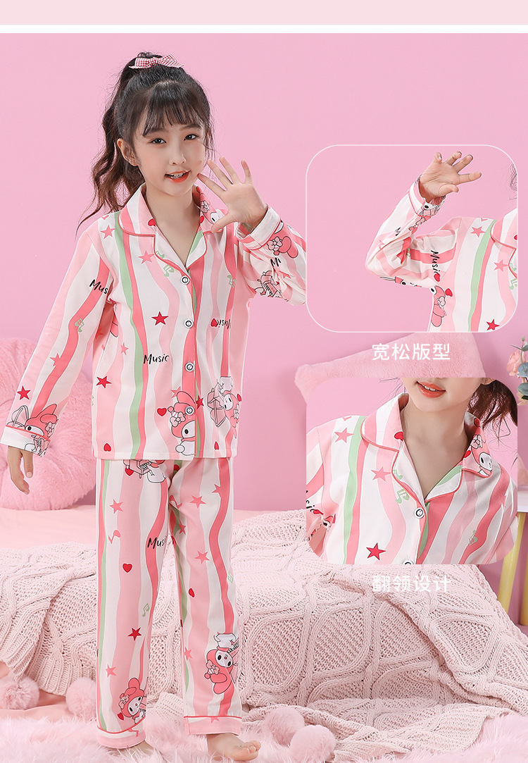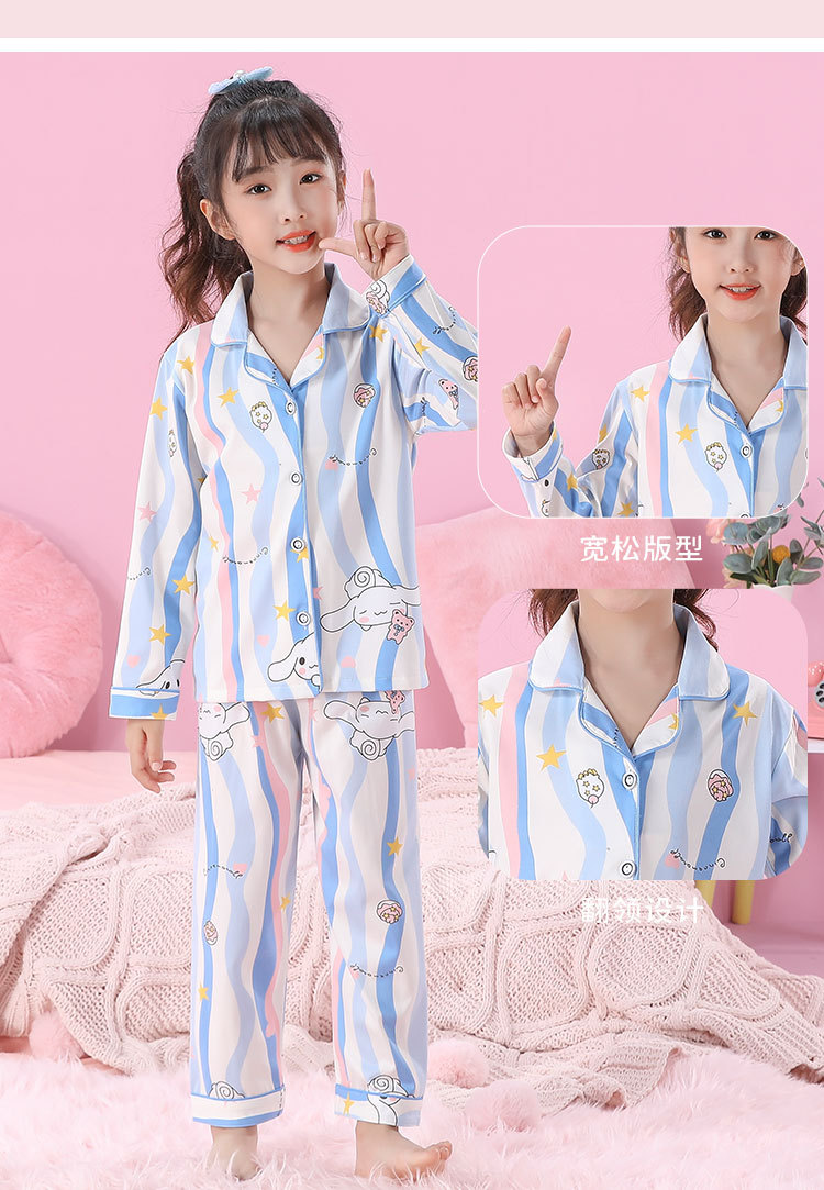 어린이 잠옷 봄과 가을 긴 소매 카디건 달콤한 귀여운 만화 인쇄 느슨한 홈 의류 소년 소녀