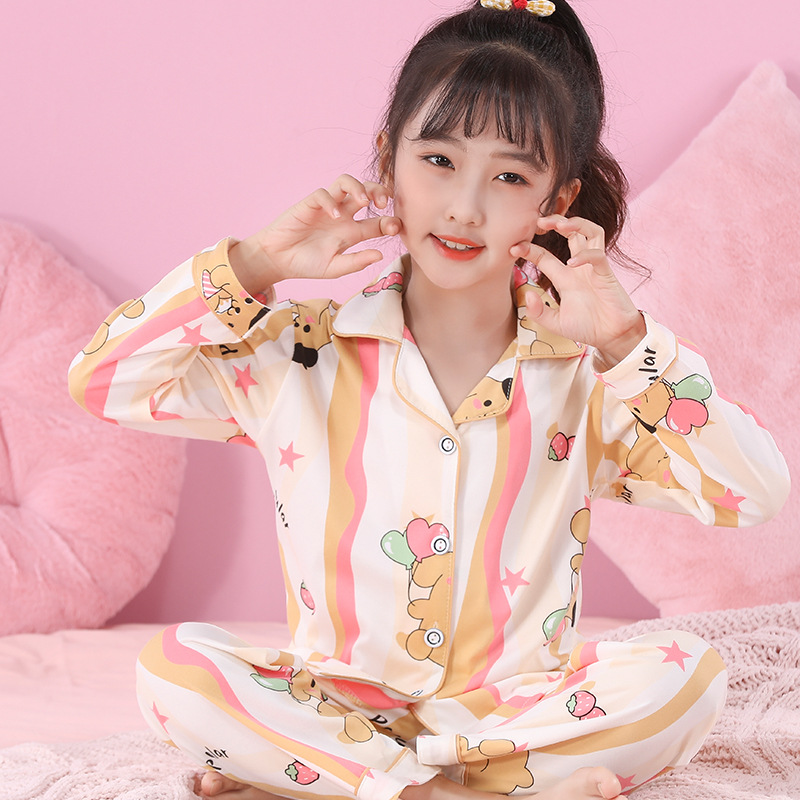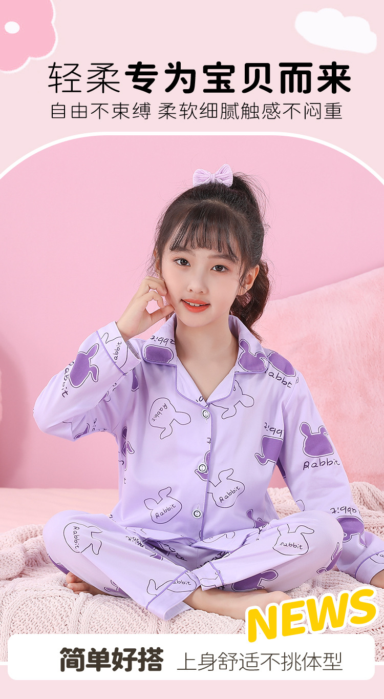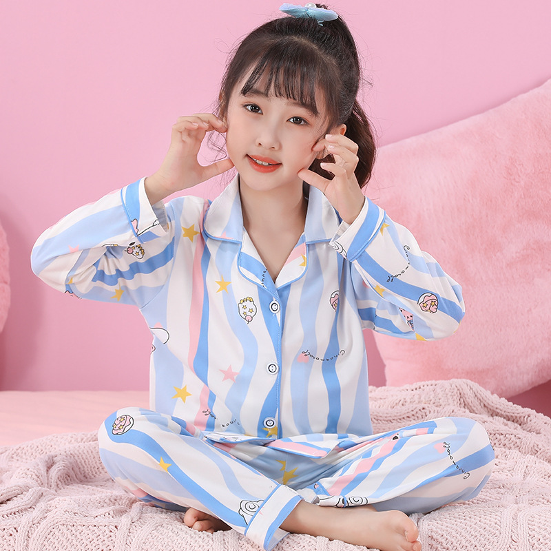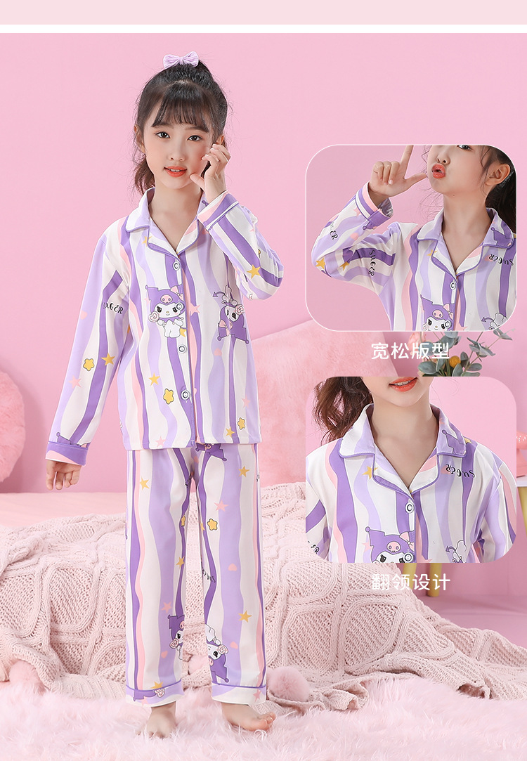 어린이 잠옷 봄과 가을 긴 소매 카디건 달콤한 귀여운 만화 인쇄 느슨한 홈 의류 소년 소녀