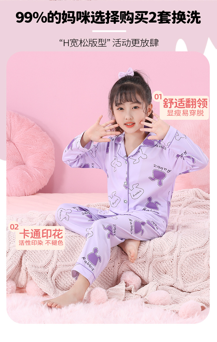 어린이 잠옷 봄과 가을 긴 소매 카디건 달콤한 귀여운 만화 인쇄 느슨한 홈 의류 소년 소녀스토어 가기
