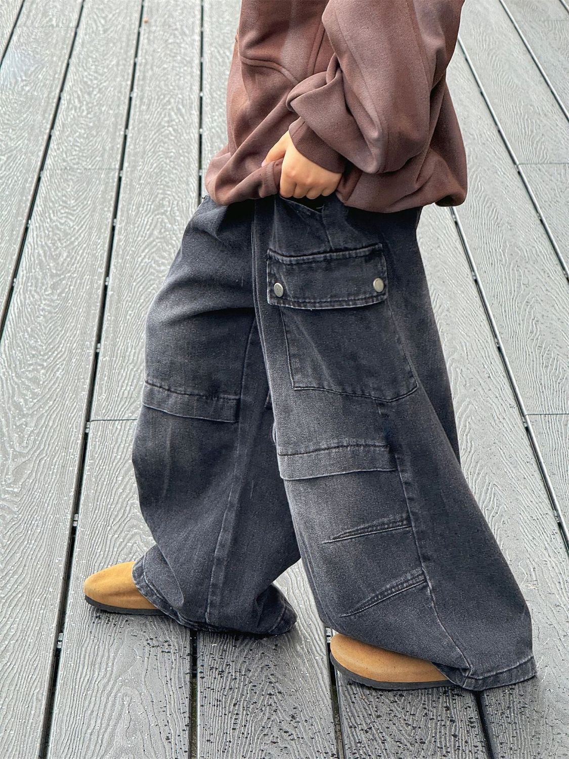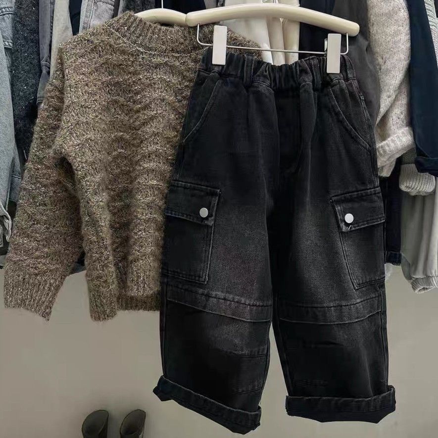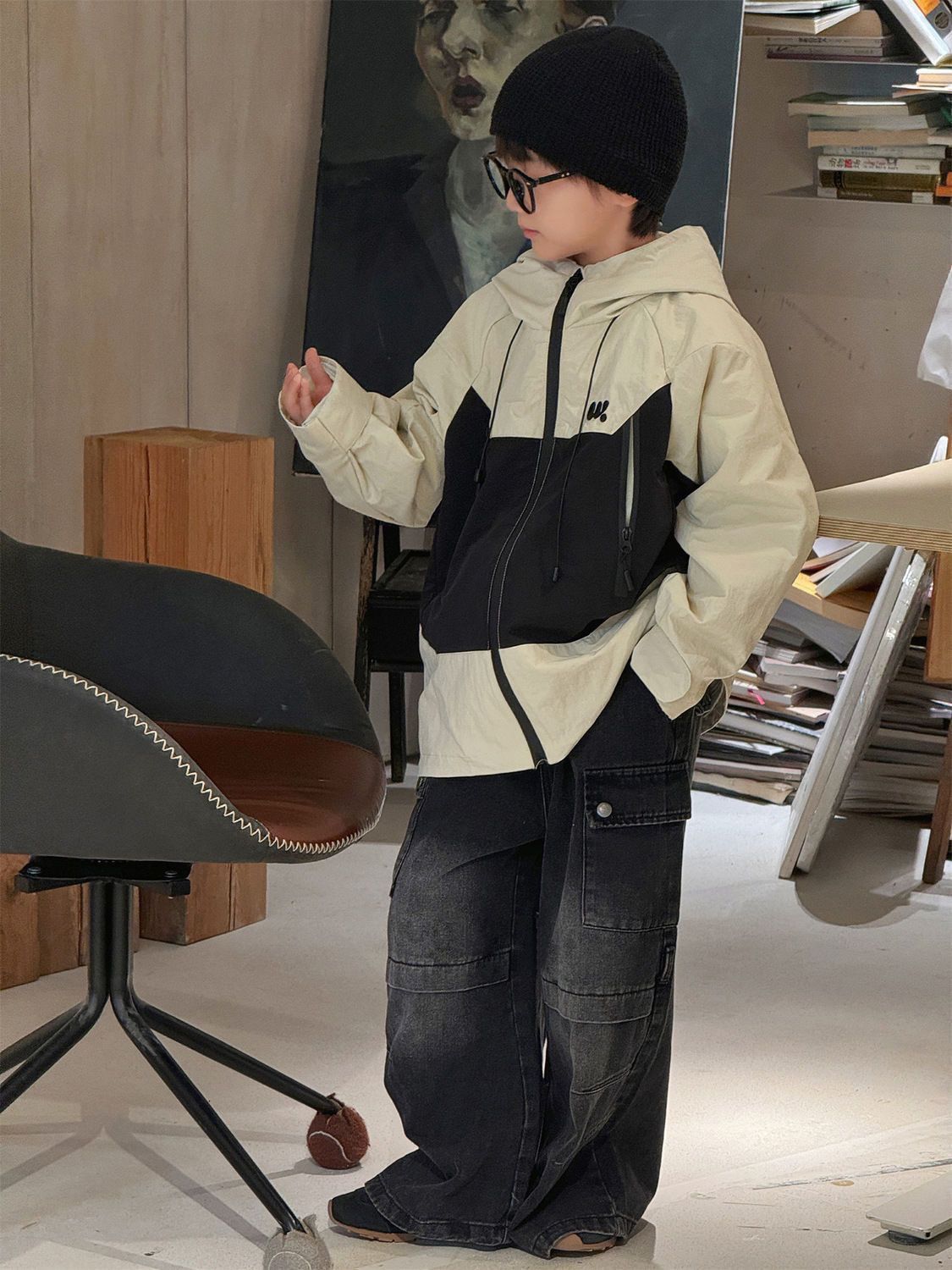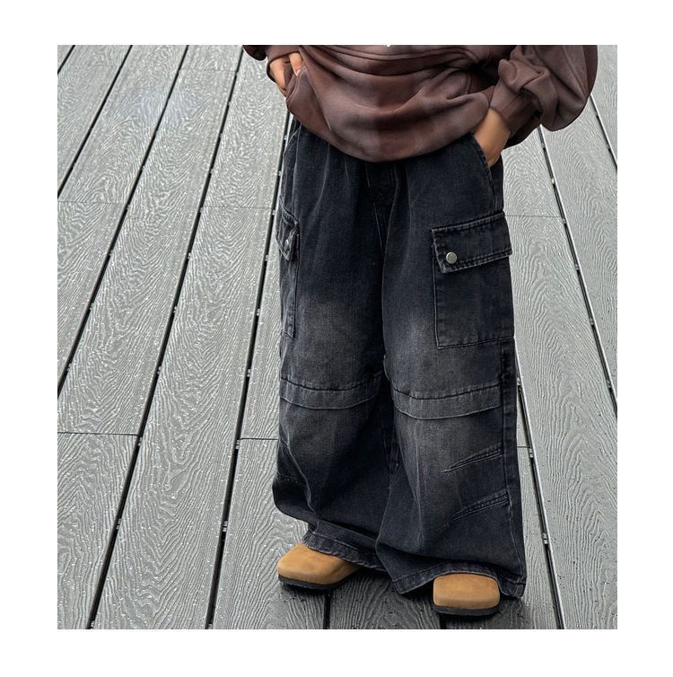 남학생 작업복 미국어린이청바지 2025 봄새 서양식 한국 올매치 느슨한 바지, 크로치 오픈스토어 가기