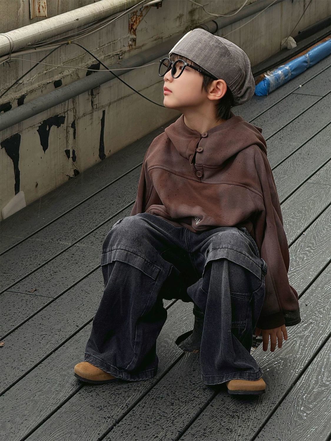 남학생 작업복 미국어린이청바지 2025 봄새 서양식 한국 올매치 느슨한 바지, 크로치 오픈