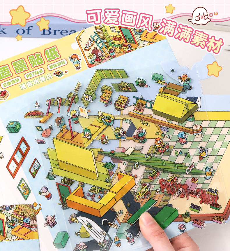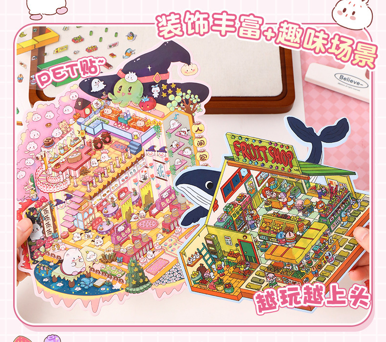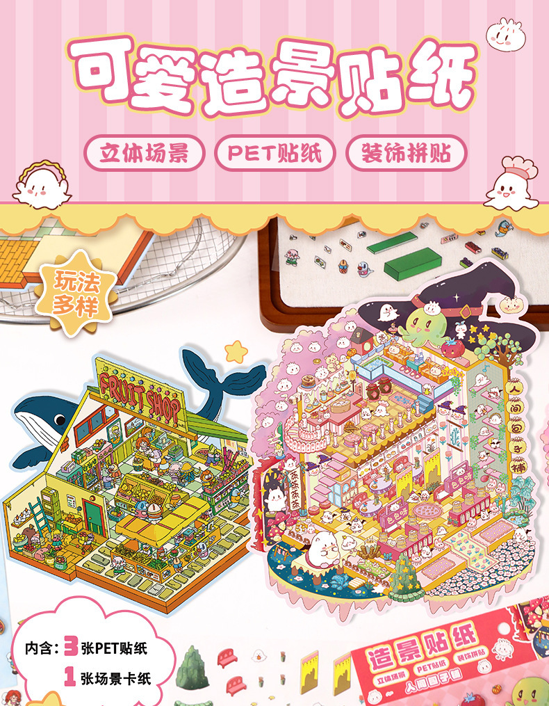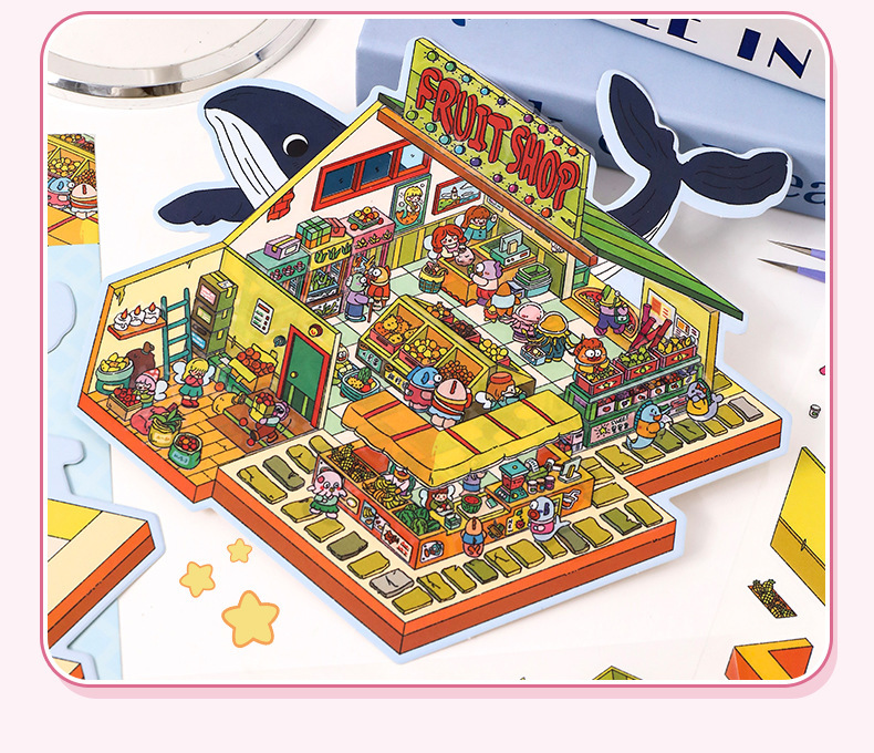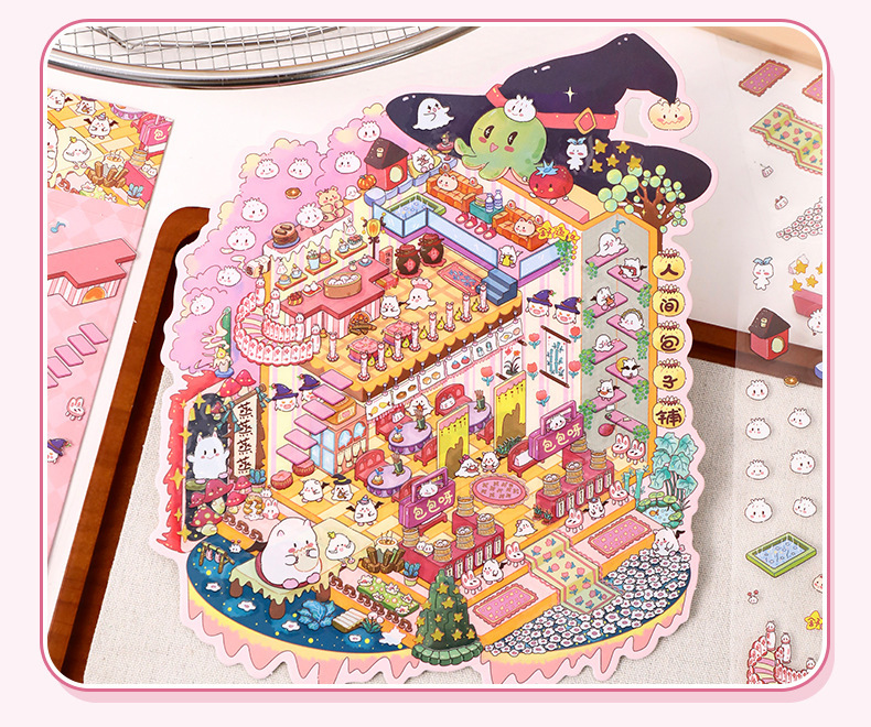 대형 5.0 미니어처 장면 조경 오두막 스티커 3D 입체 스태킹 수제 마이크로 장면 전체 콜라주 세트스토어 가기
