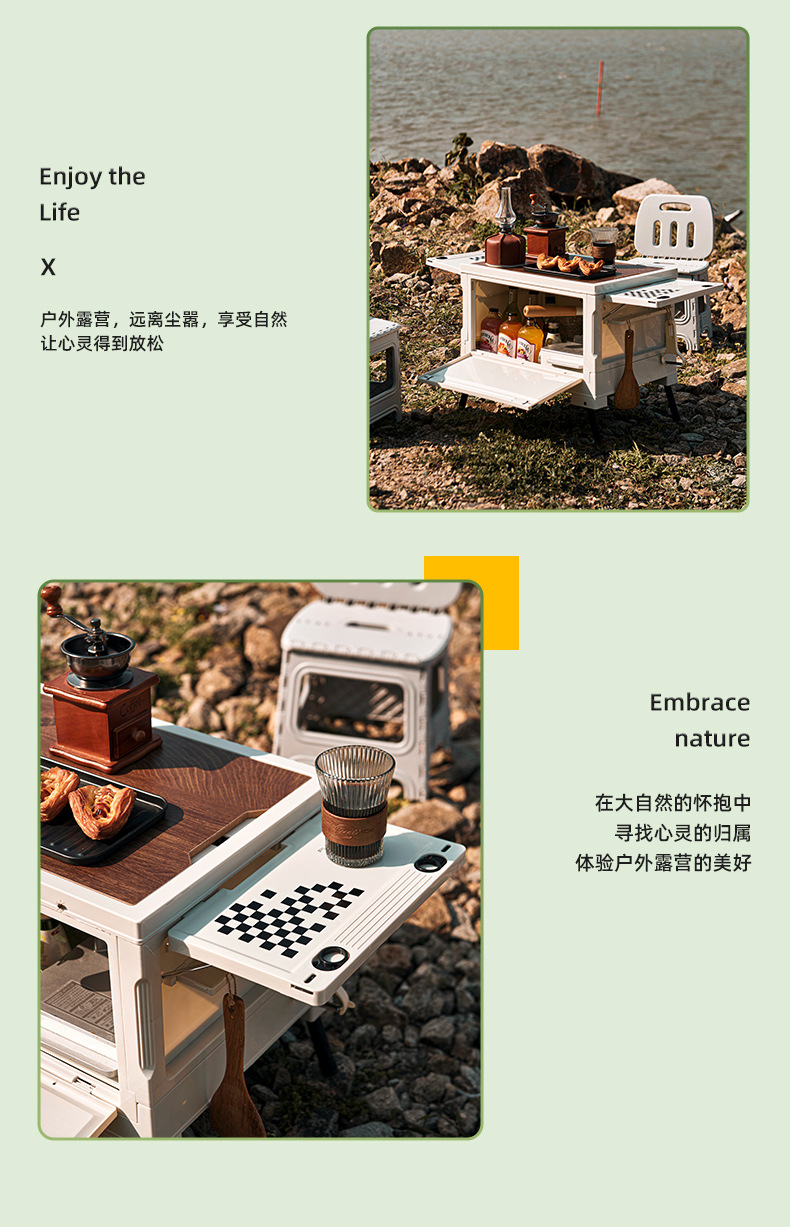 • 미색 나무 커버는 야외 식탁으로 사용할 수 있습니다.