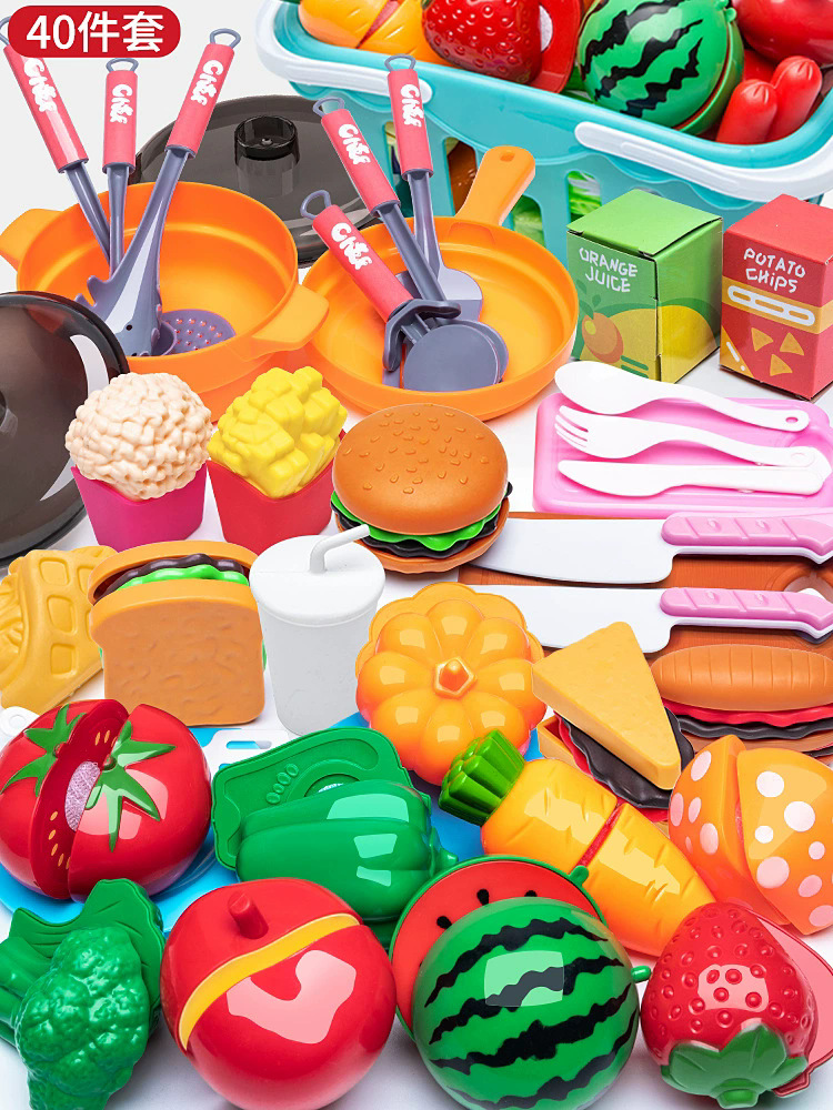 국경 간 어린이 놀이 집 과일 치크 시뮬레이션 주방 스토브 소녀 야채 케이크 피자 장난감 세트