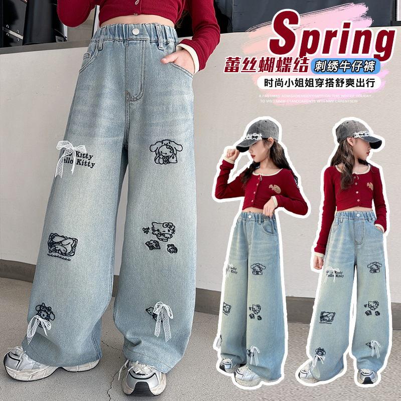 소녀 청바지 봄과 가을 2025 새로운 어린이의 세련된 패셔너블 넓은 다리 바지 대형 어린이 느슨한 스트레이트 바지스토어 가기