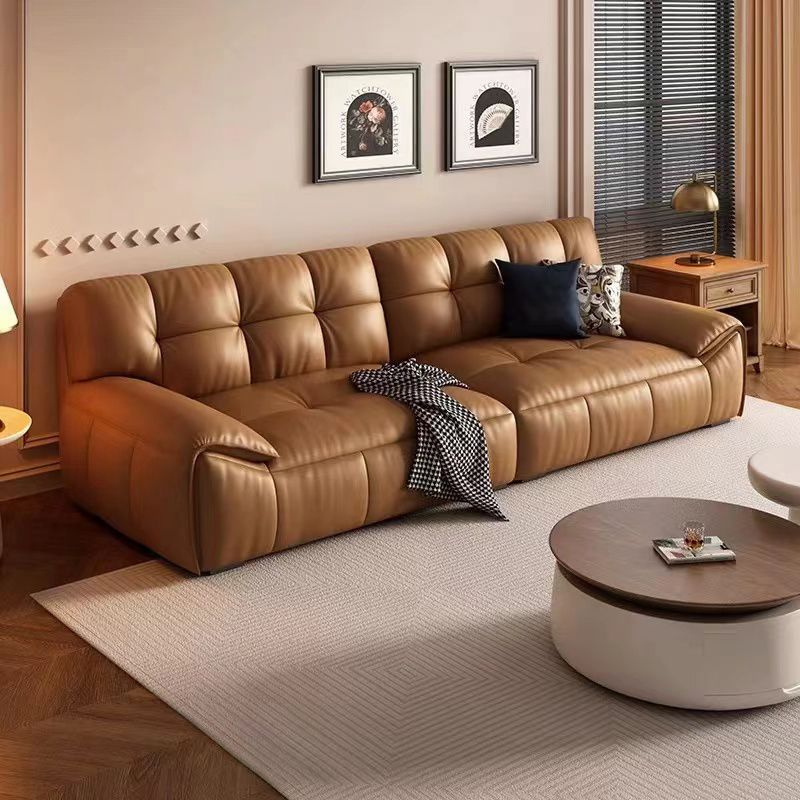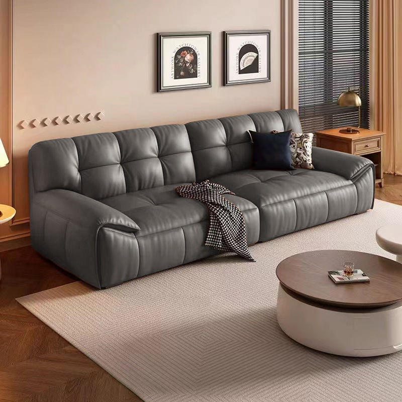 폭발성 가죽 소파 이탈리아 미니멀리스트 작은 아파트 거실 침실 라이트 럭셔리 편안한 하이 엔드 코튼 캔디 스트레이트 소파