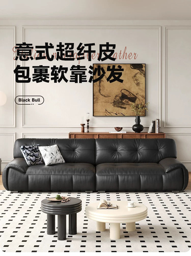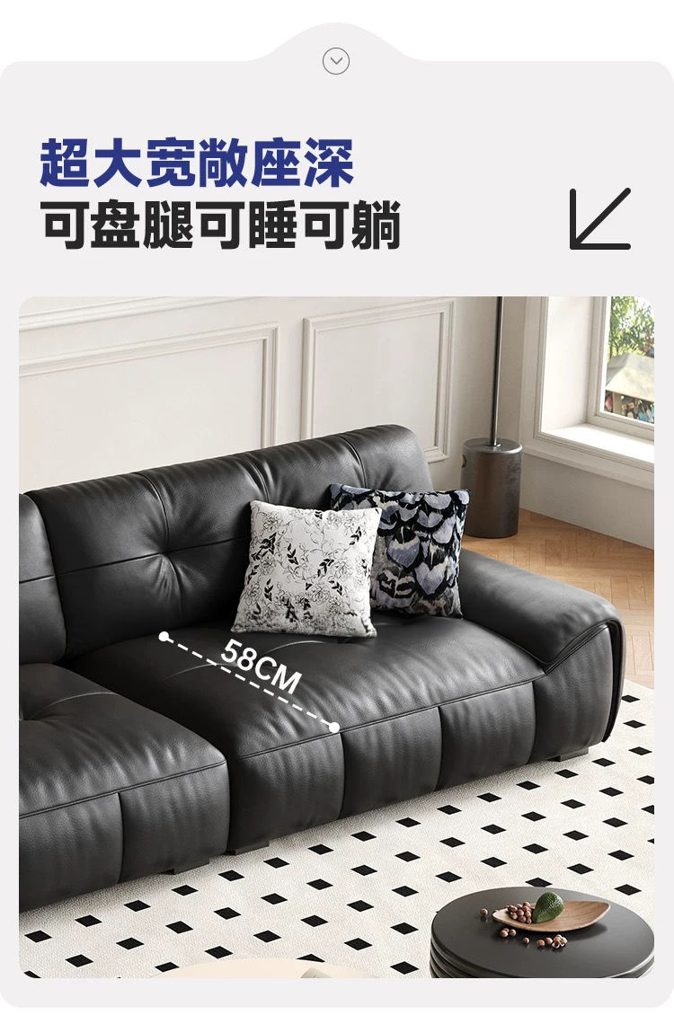 폭발성 가죽 소파 이탈리아 미니멀리스트 작은 아파트 거실 침실 라이트 럭셔리 편안한 하이 엔드 코튼 캔디 스트레이트 소파스토어 가기