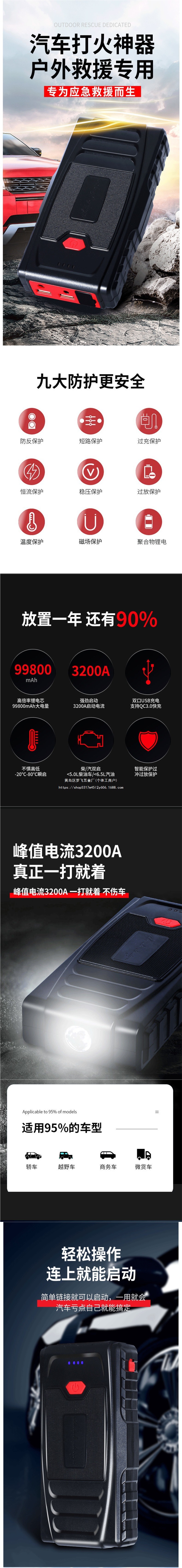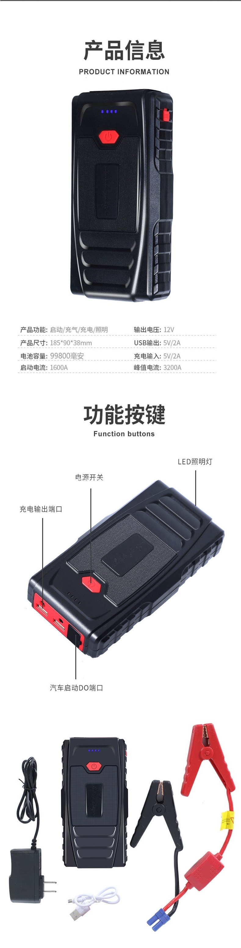 자동차 비상 시작 전원 공급 장치 12V 모바일 충전 보물 대용량 자동차 배터리 백업 점화 전원