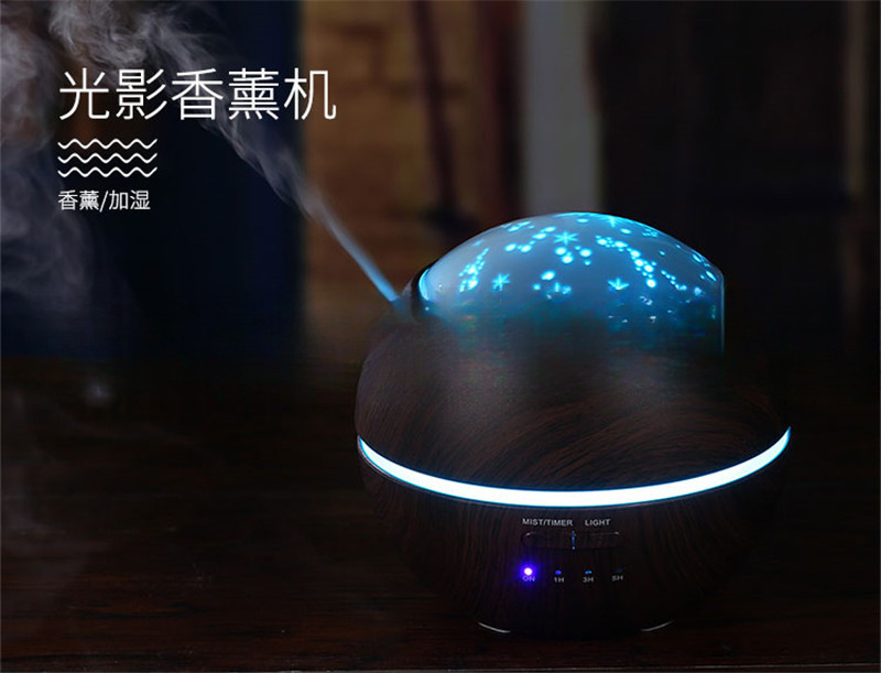 초음파 빛과 그림자 나무 곡물 아로마 테라피 기계 홈 창조적 인 분위기 밤 빛 아로마 테라피 가습기 창조적 인 분위기 야간 조명