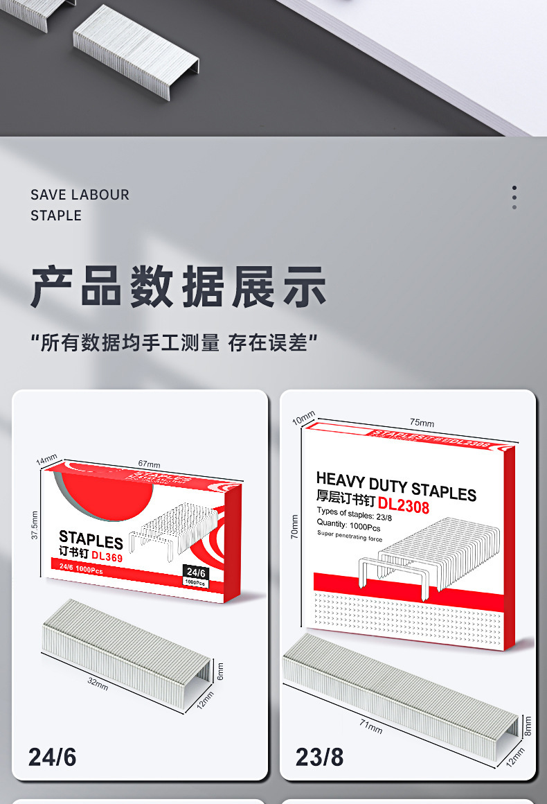 Hua Chi 0012 스테이플 24/6 사무용품 일반 모델 스몰 사이즈 1000/박스에 정사이즈 스테이플스토어 가기