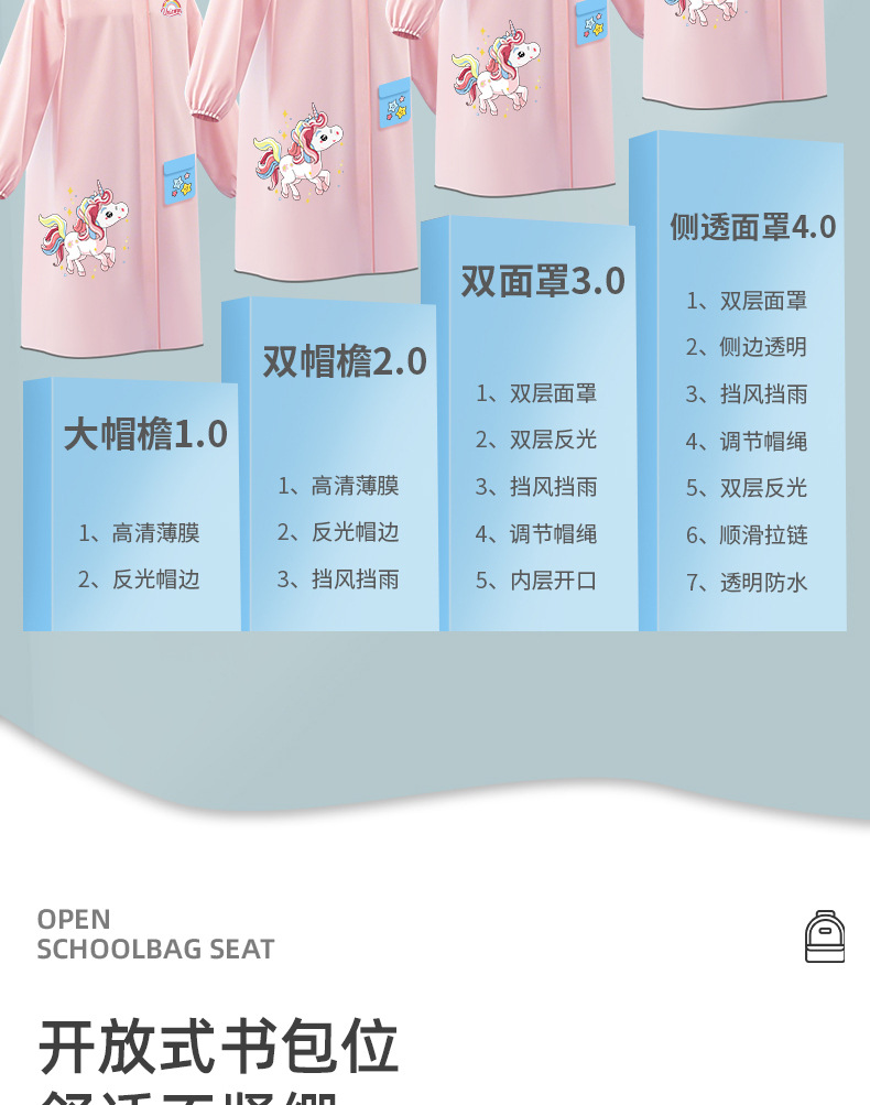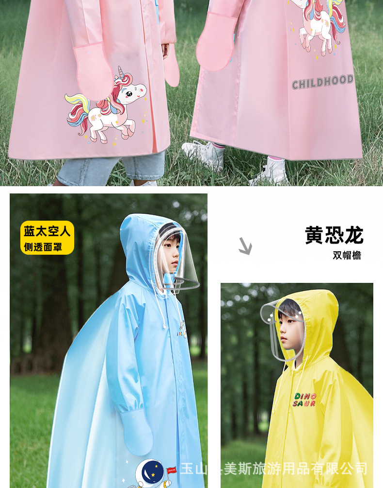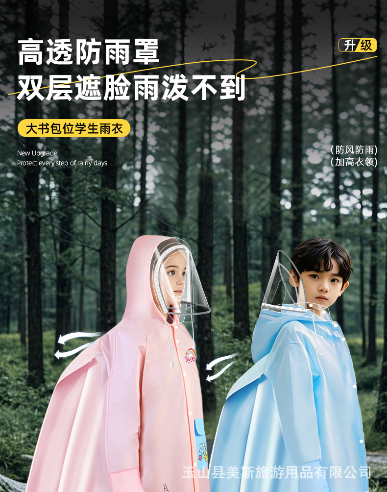 업그레이드 된 마스크 어린이 비옷 소년과 소녀의 전신 방수 판초, 초등학교용 스쿨 백스토어 가기