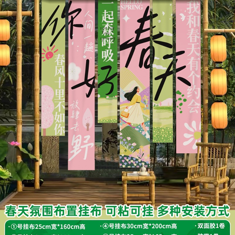• 【안녕하세요 봄⭐걸이 천 + 상자에는 설치 도구 전체 세트가 함께 제공됩니다.] 봄 분위기 장식 걸이 천 상자 세트 C