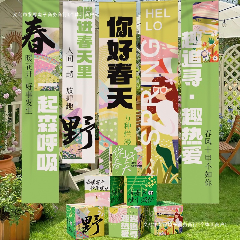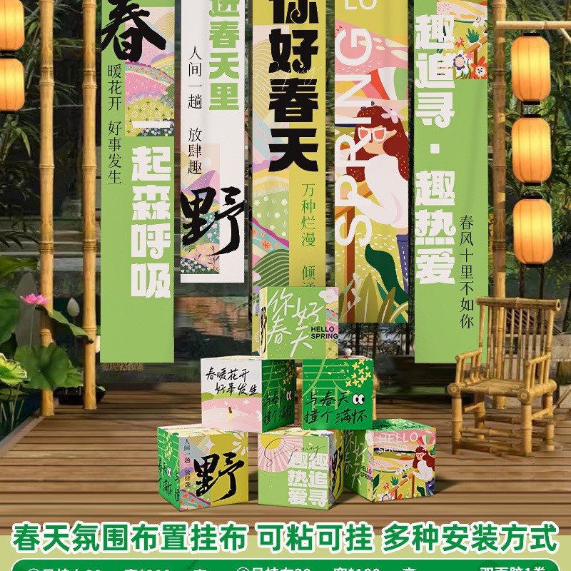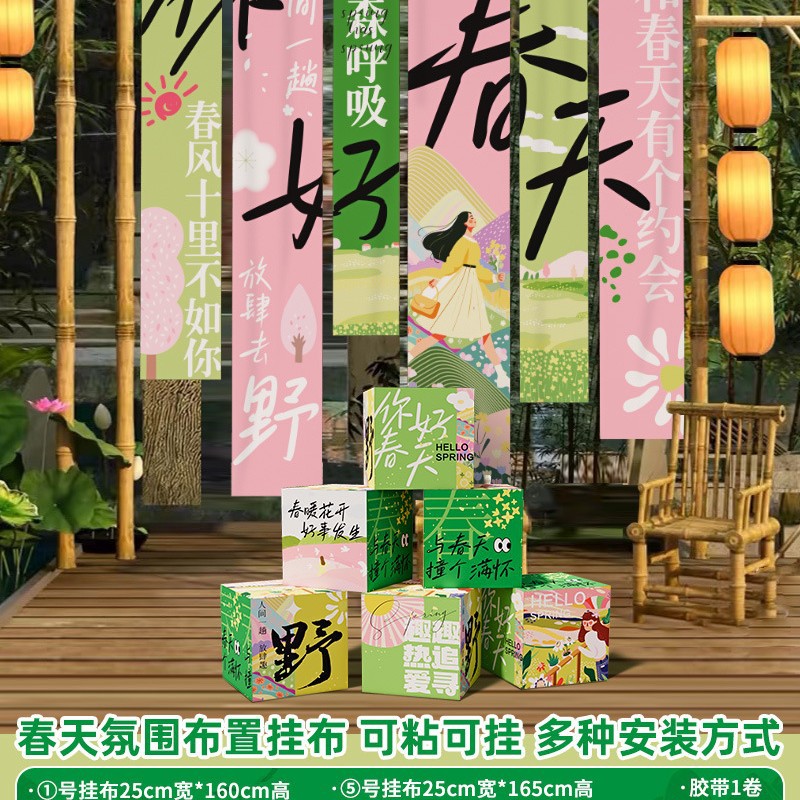 • 【안녕하세요 봄⭐걸이 천 + 상자에는 설치 도구 전체 세트가 함께 제공됩니다.] 봄 분위기 장식 걸이 천 상자 세트 B