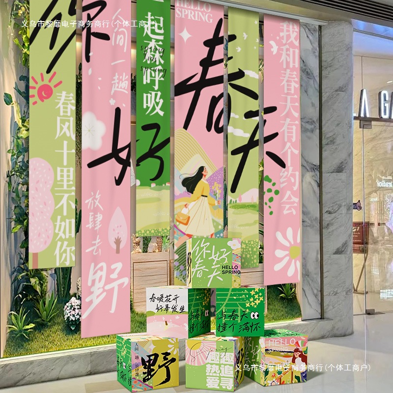 봄 날 봄 장면 레이아웃 장식 분위기 쇼핑몰 상점 반지 창조 사진 영역 창 배너 배경 매달려 천스토어 가기