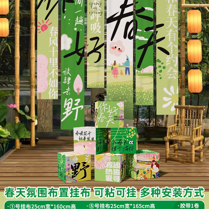 • 【안녕하세요 봄⭐걸이 천 + 상자에는 설치 도구 전체 세트가 함께 제공됩니다.] 봄 분위기 장식 걸이 천 상자 세트 A