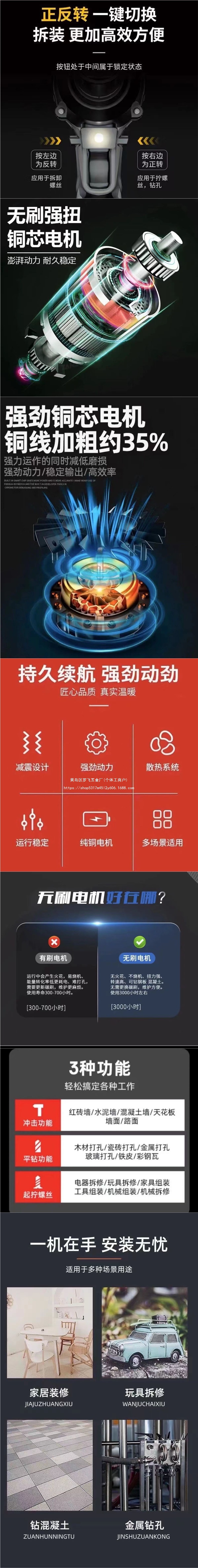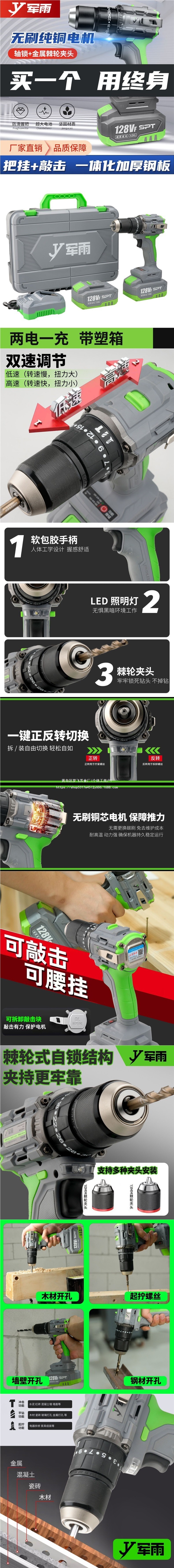 [새로운 3 세대 영향] 순수 구리 브러시리스 대형 강철 총 산업 등급 4815 전원 모터 리튬 배터리 2 전기 및 1 충전