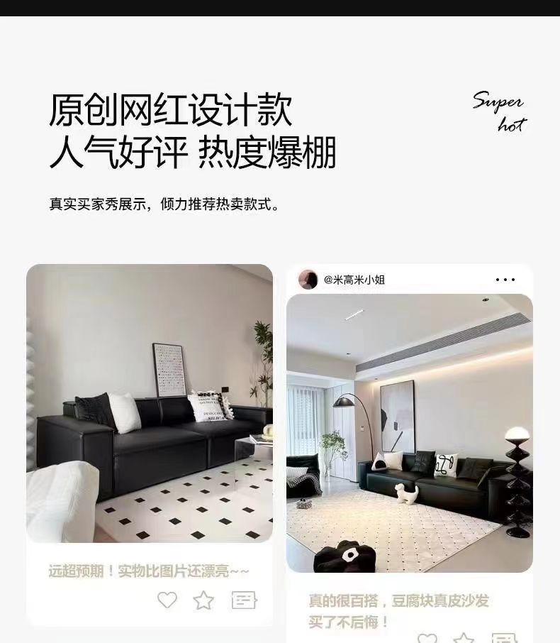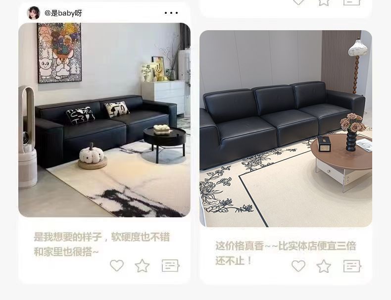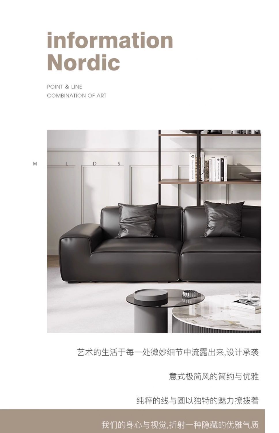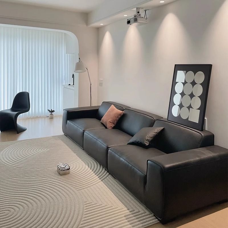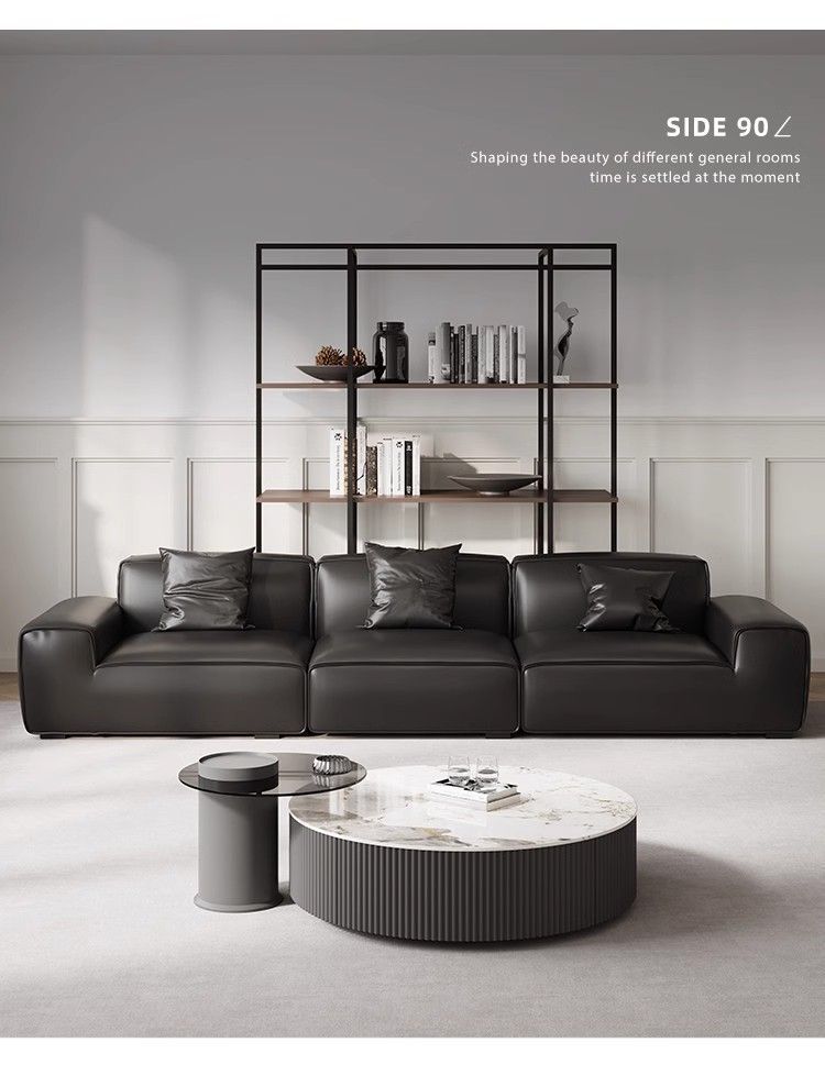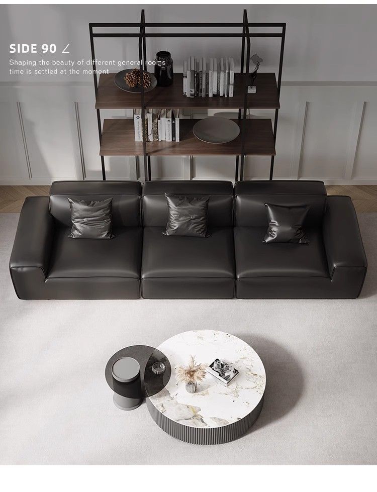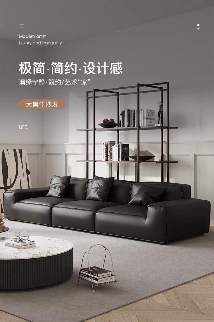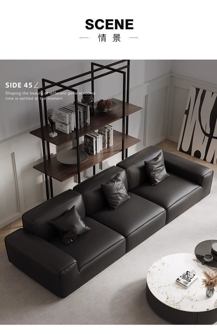 큰 검은 가죽 소파 스트레이트 행 간단한 현대 작은 아파트 이탈리아 스타일 미니멀리스트 거실 두부 블록 스트레이트 로우 소파스토어 가기