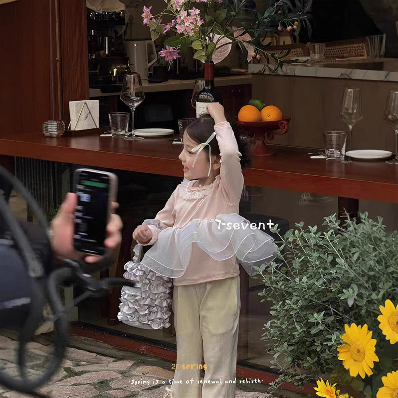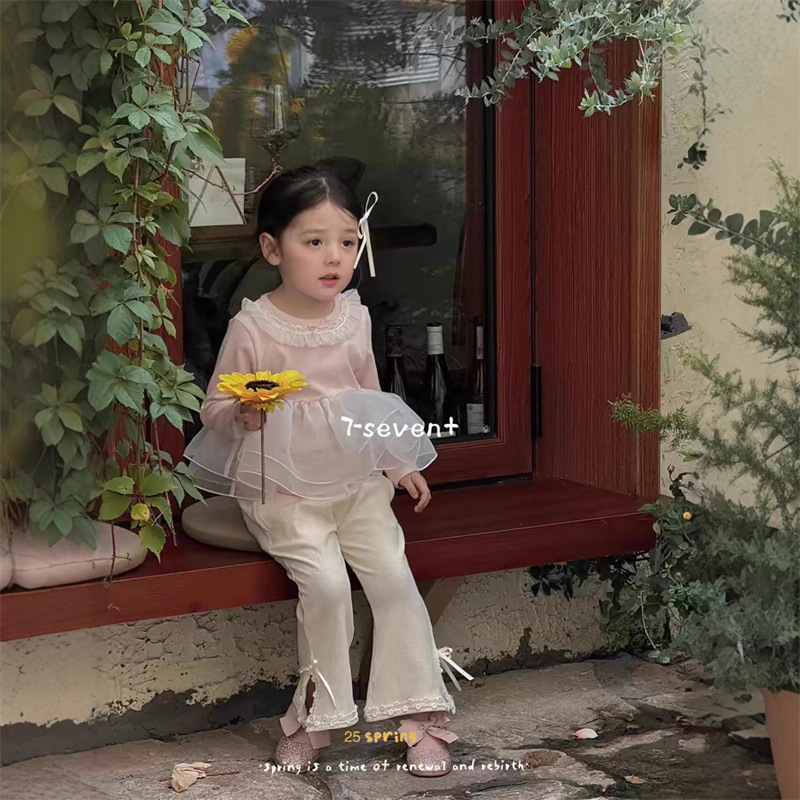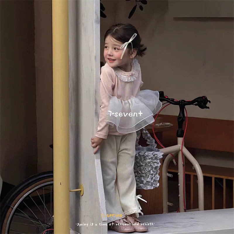 소녀 세트 봄과 가을 아기 소녀 보투 셔츠 거즈 스커트 긴 소매 코튼 티셔츠 탑 어린이 스위트 레이스 마이크로 팬츠