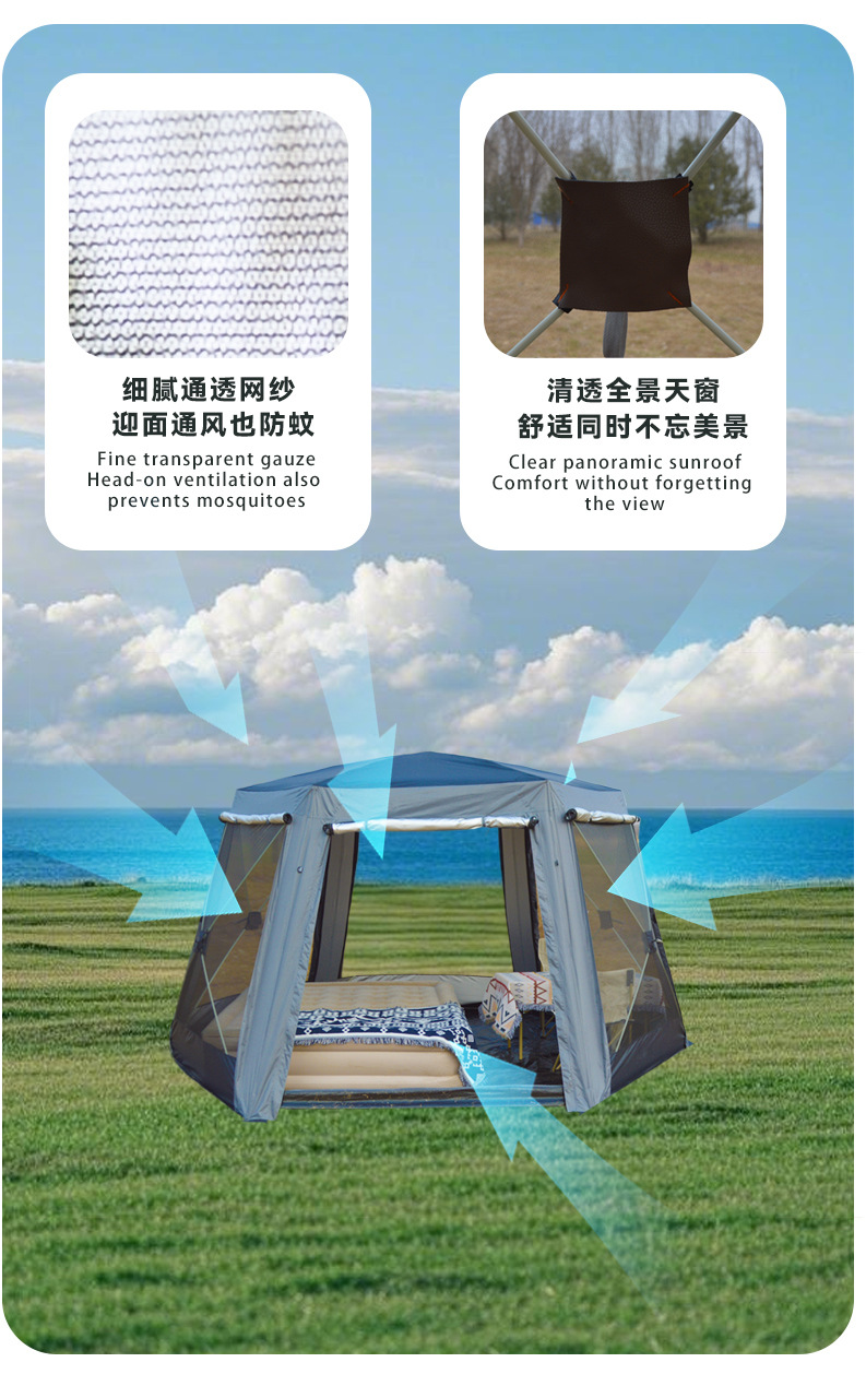 도매 육각형 자동 빠른 설치 캠핑 텐트 야외 접이식 나들이 몽골 텐트 5-8인용 캠핑 장비스토어 가기