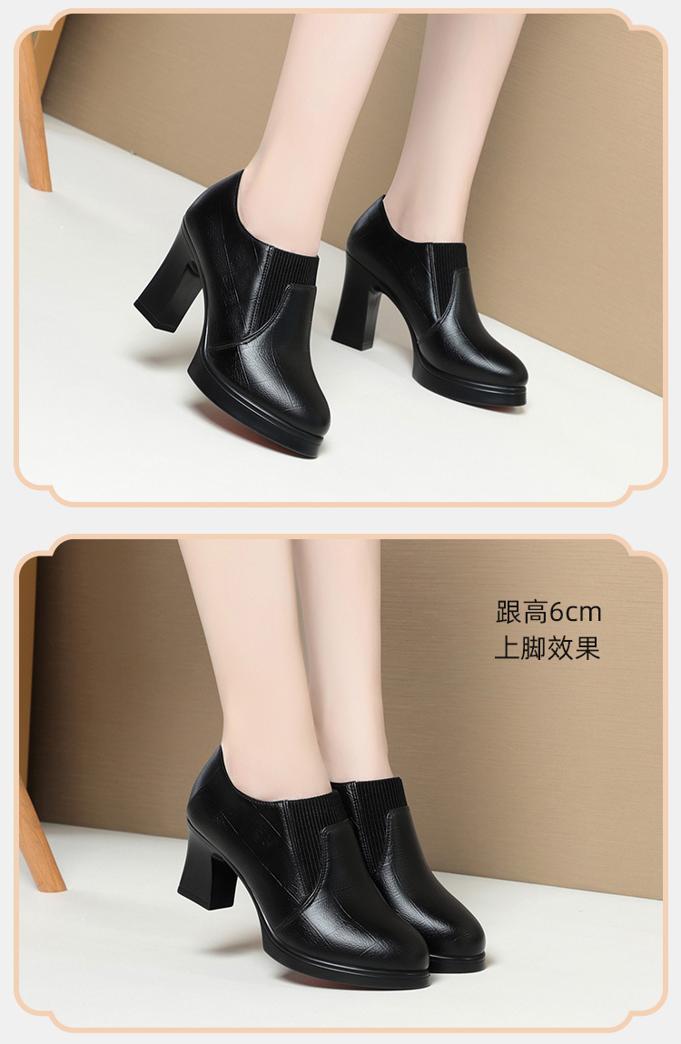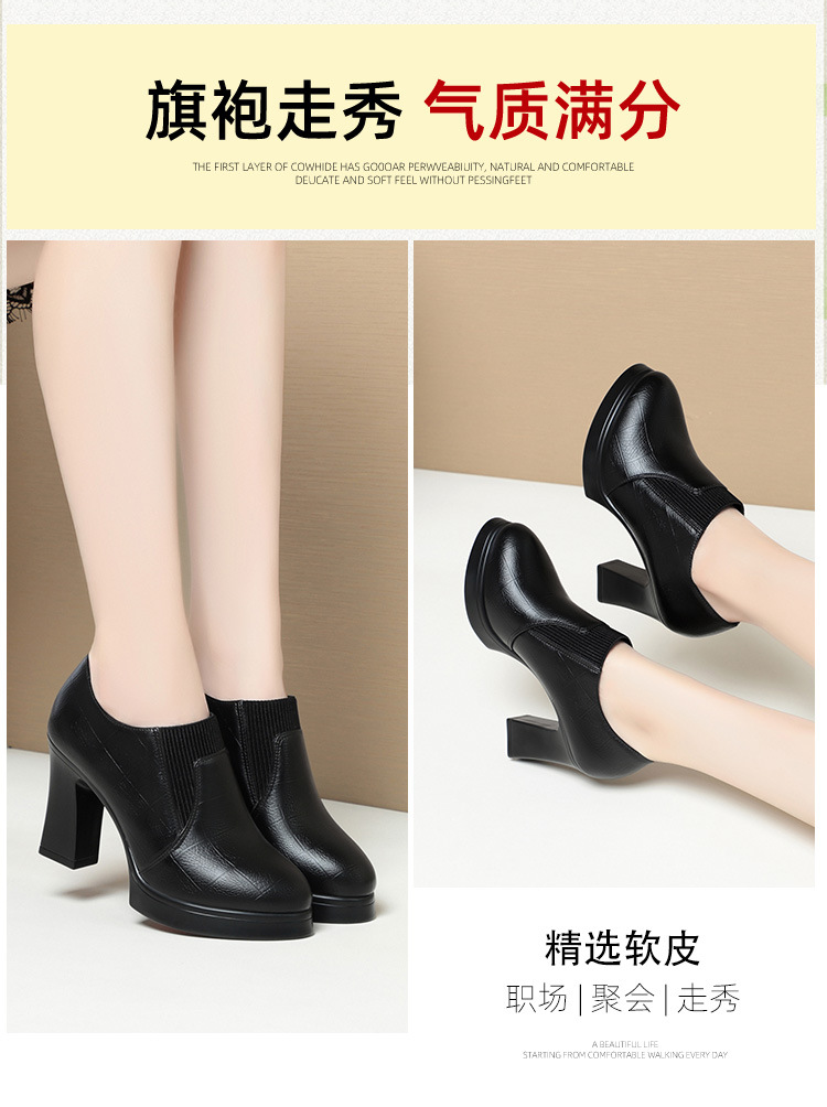 높은 굽 신발의 세대 봄과 가을 신발 여성의 두꺼운 발 뒤꿈치 부드러운 바닥 부드러운 가죽 편안한 두꺼운 바닥 깊은 입 신발 여성 신발스토어 가기