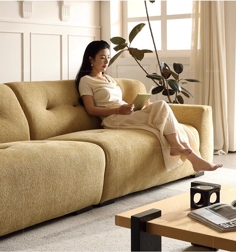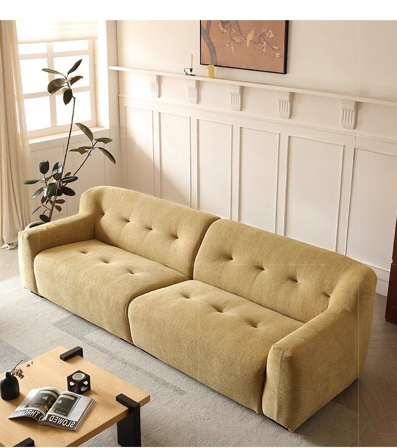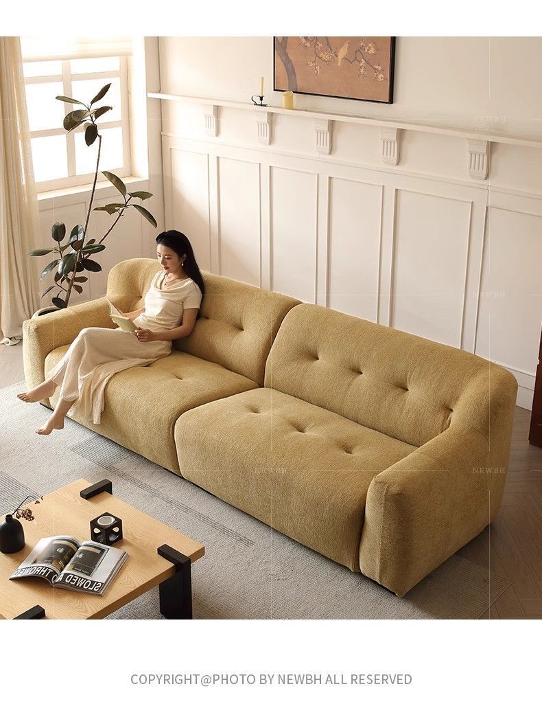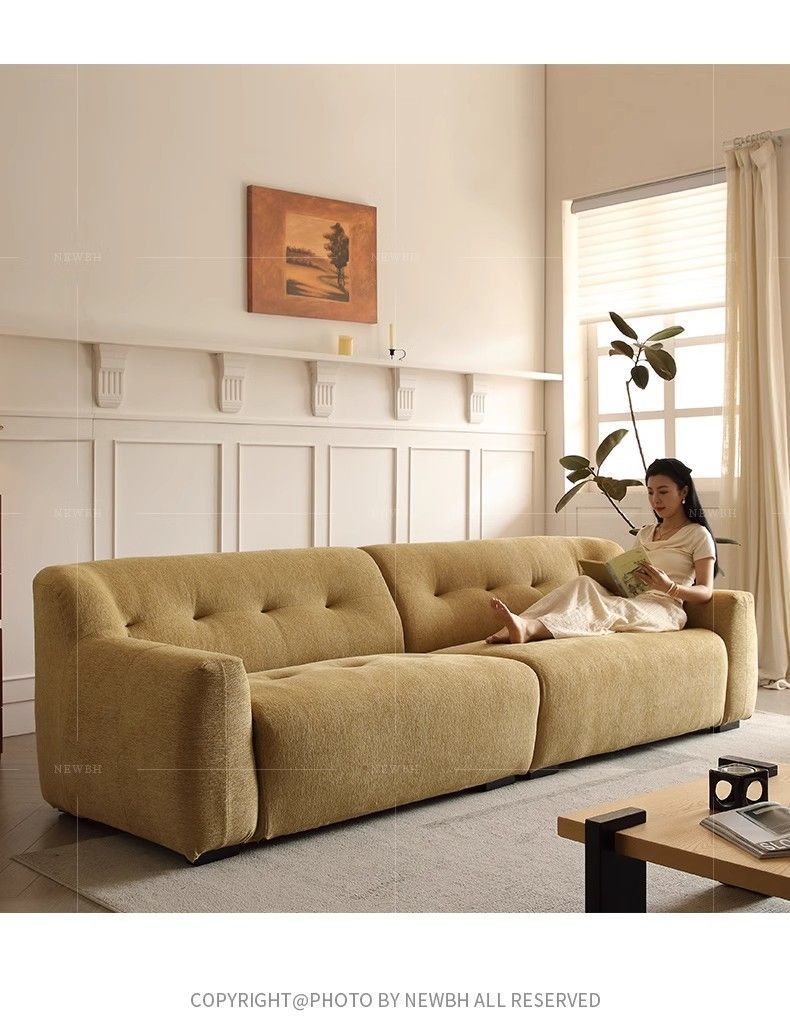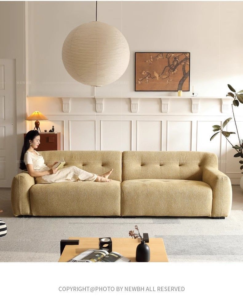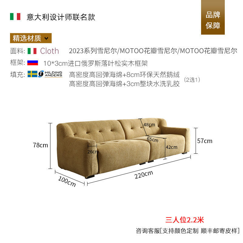 크림 스타일 거실 체닐 패브릭 소파 2024 새로운 빈티지 작은 아파트 스트레이트 3 인승 마쓰테이크 소파스토어 가기