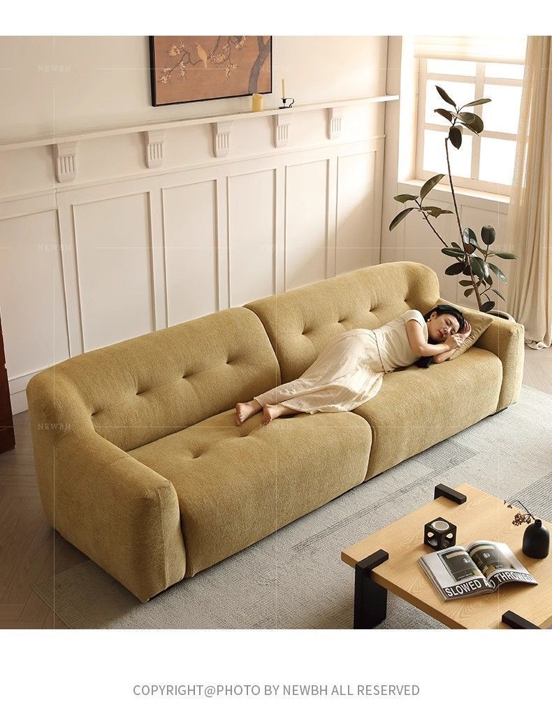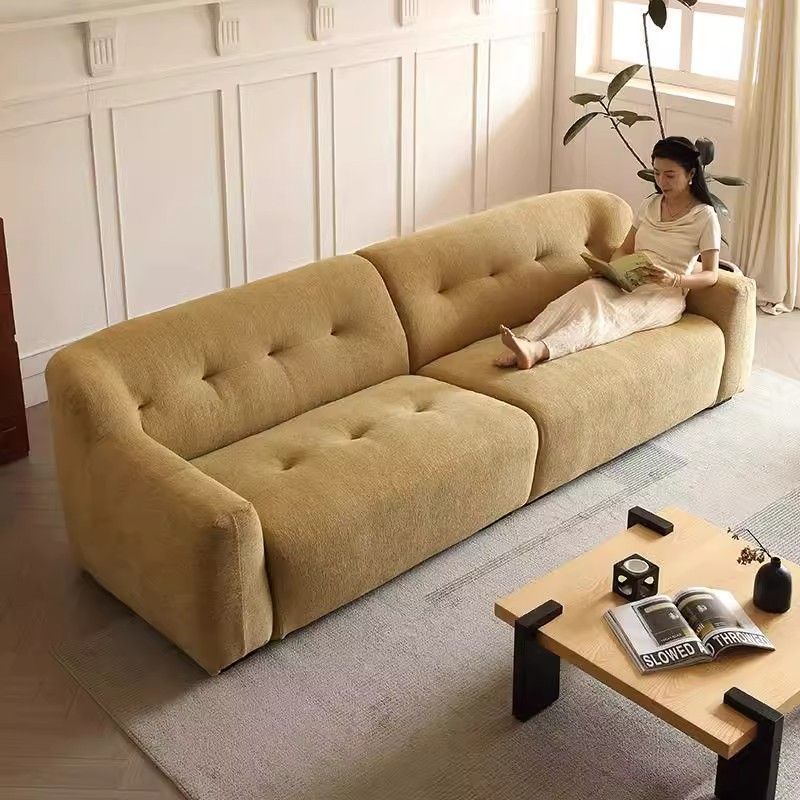 크림 스타일 거실 체닐 패브릭 소파 2024 새로운 빈티지 작은 아파트 스트레이트 3 인승 마쓰테이크 소파