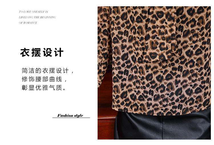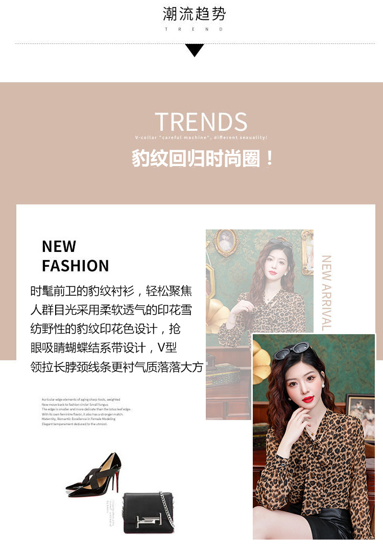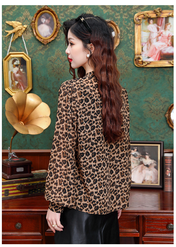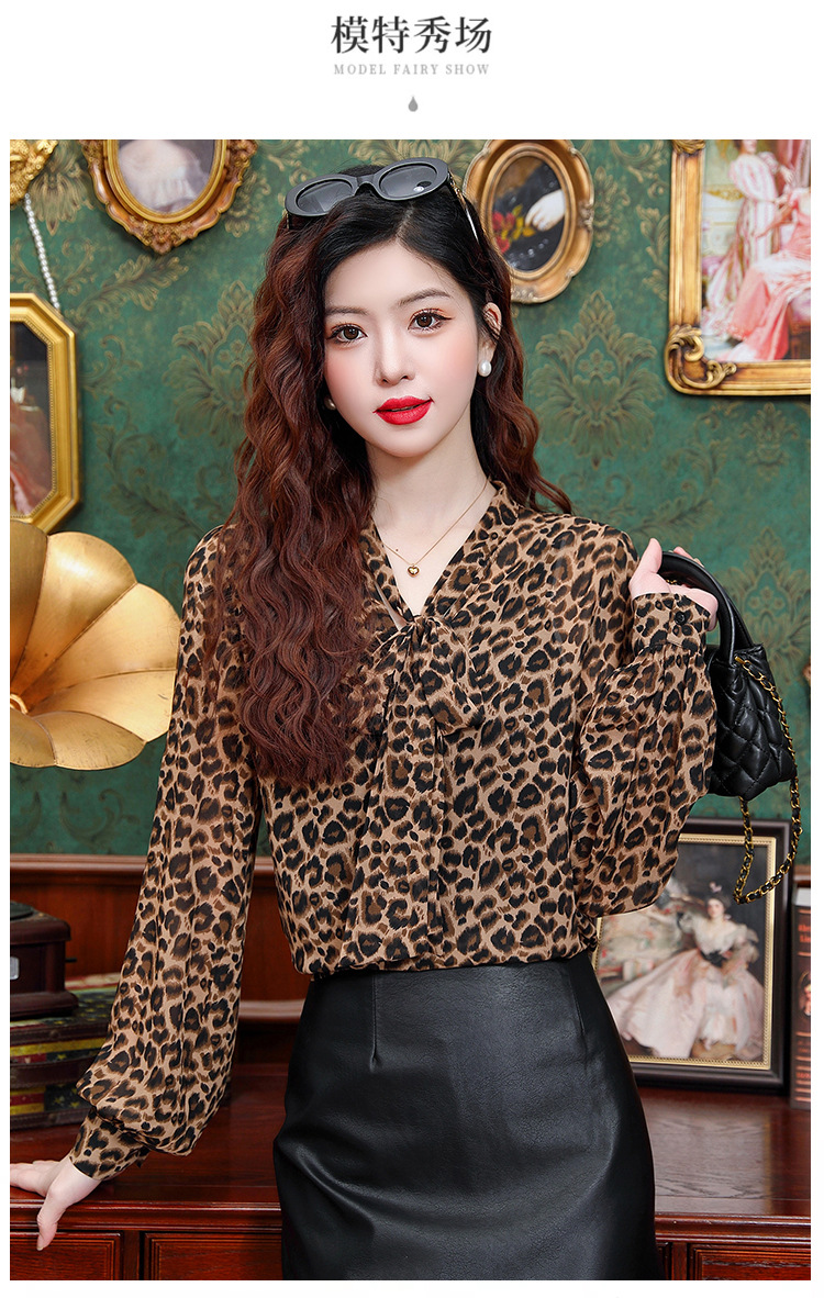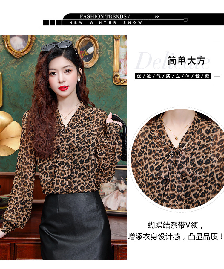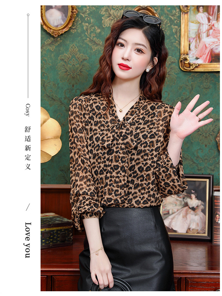 여성용 나비넥타이 레오파드 프린트 셔츠, 가벼운 럭셔리, 연령 감소, 서양식, 연령 감소, 배 덮는 쉬폰 탑스토어 가기