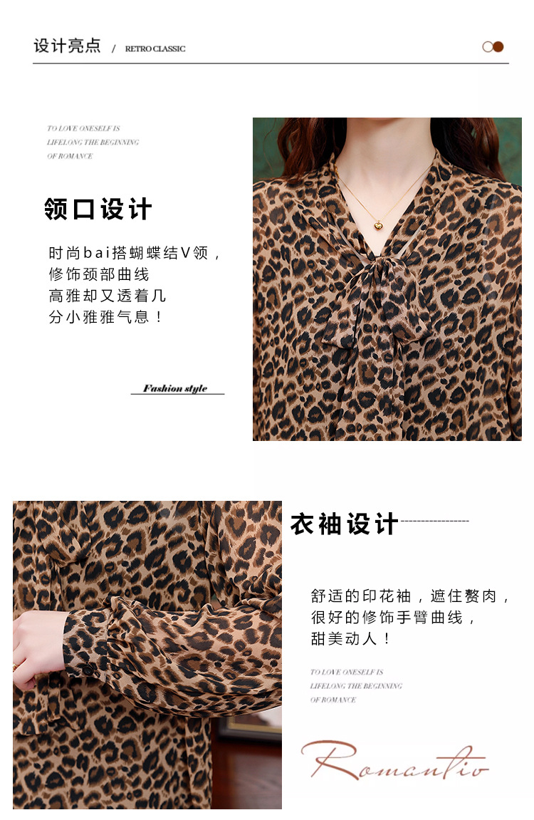 여성용 나비넥타이 레오파드 프린트 셔츠, 가벼운 럭셔리, 연령 감소, 서양식, 연령 감소, 배 덮는 쉬폰 탑