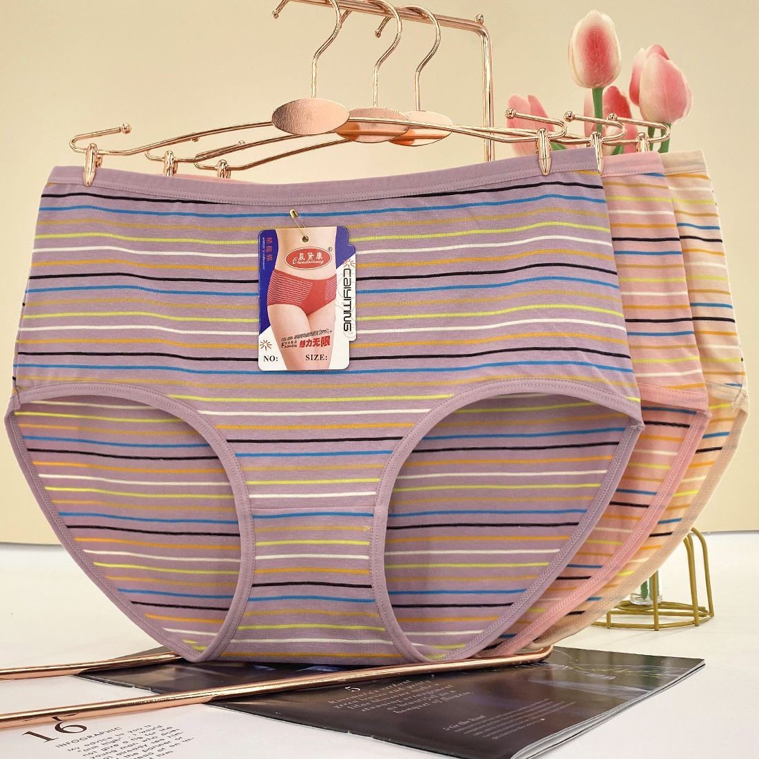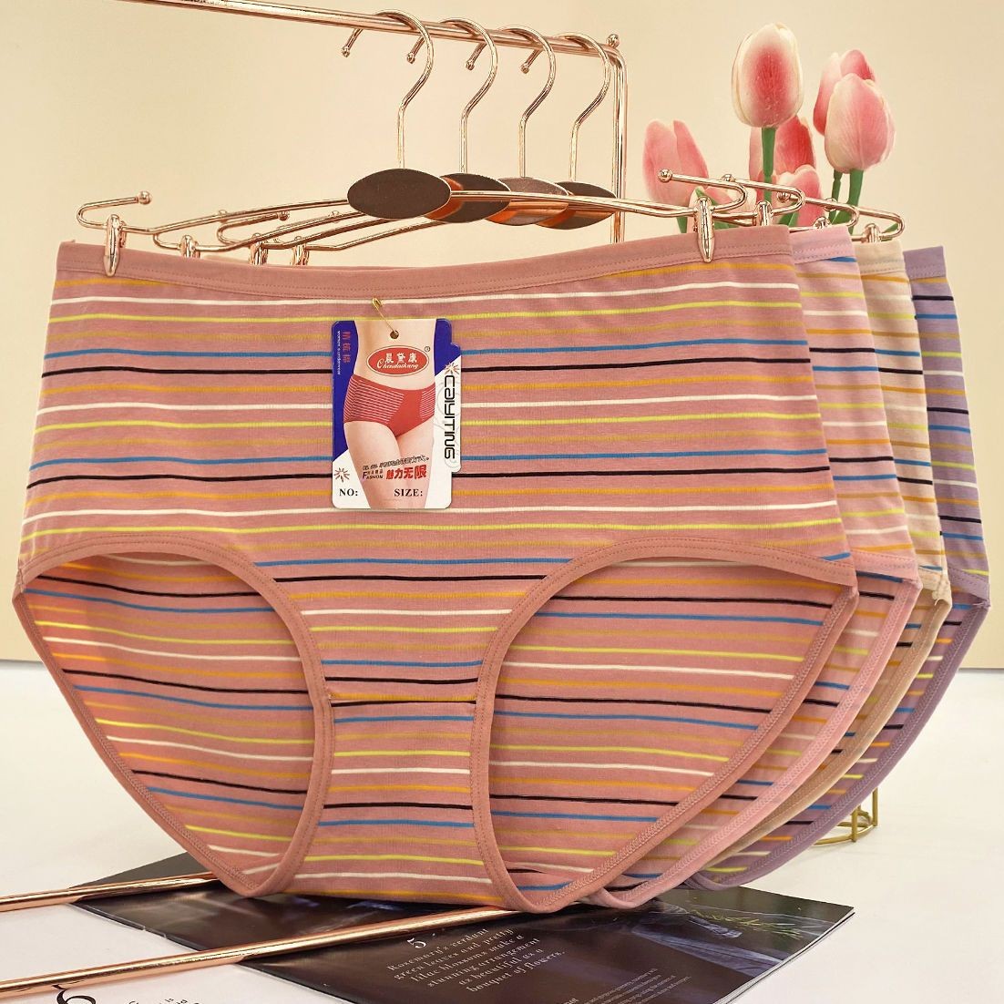 공장 직판 컬러풀한 면 스트라이프 여성용 팬티, 플러스 사이즈, 루즈핏, 통기성 좋고 편안하며 피부 친화적인 중간 허리 삼각 팬티