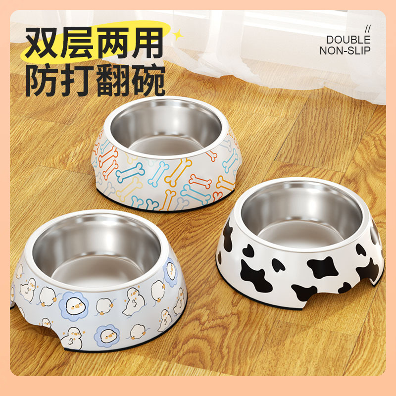 ✅멜라민 그릇 스테인레스 스틸 개 밥 그릇 개 식품 마시는 애완 동물 고양이 음식 밥 그릇 반대로 뒤집는 개 그릇 고양이 그릇스토어 가기