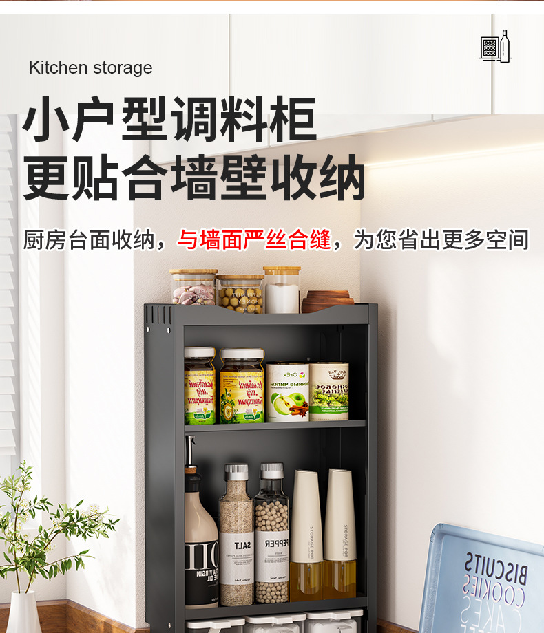 작은 아파트 주방 조미료 보관 랙 카운터 탑 조미료 캐비닛 코너 다기능 조미료 오일 소금 소스 식초 보관스토어 가기