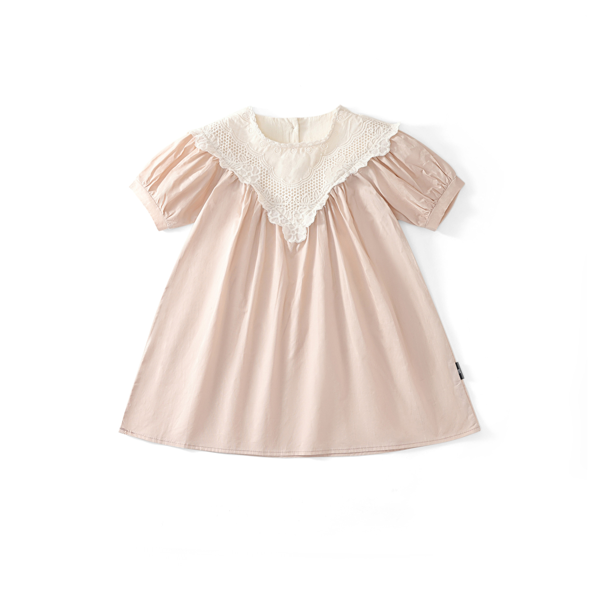 [재고 소진시 교환 불가] MDD 여아 프렌치 레트로 스타일 반팔 여아 드레스 레이스 칼라 퓨어 코튼