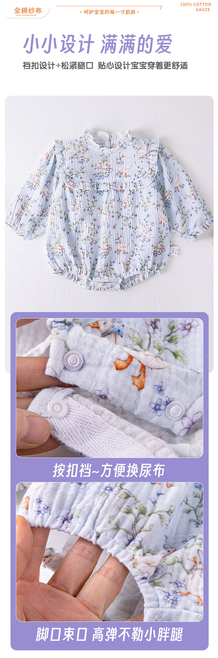 신생아 봄 옷 아기 랩 패션 옷 여름 얇은 긴팔 바디 옷 아기 삼각형 토끼 옷 거즈 등반 옷스토어 가기