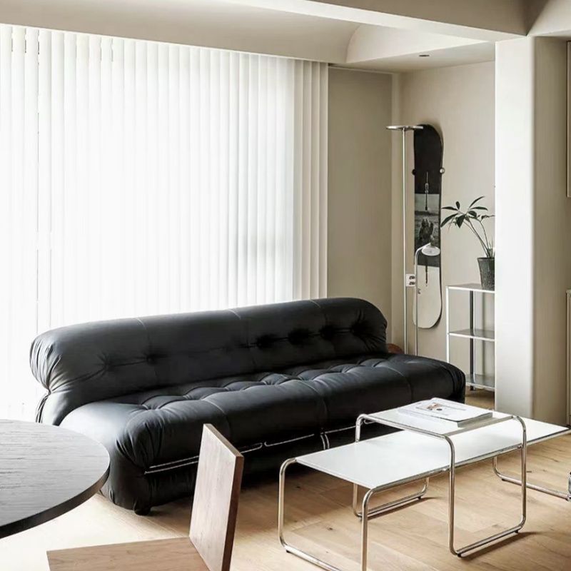 이탈리아 미니멀리스트 대형 스틸 치아 소파 거실 작은 아파트 3 인승 디자이너 크리에이티브 블랙 하마 가죽 소파