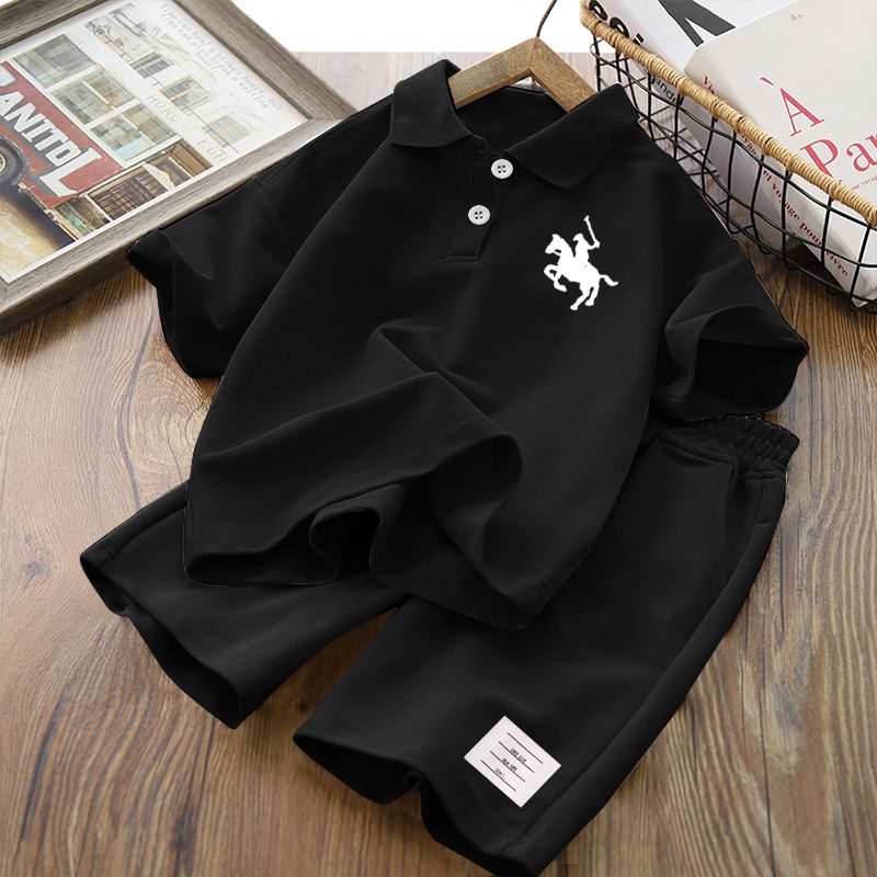 폴로 셔츠 소년 중대형 어린이 반팔 얇은 2024 최고 아기 잘 생긴 새 투피스 세트 옷