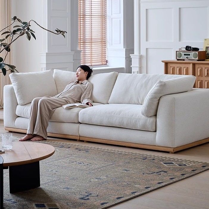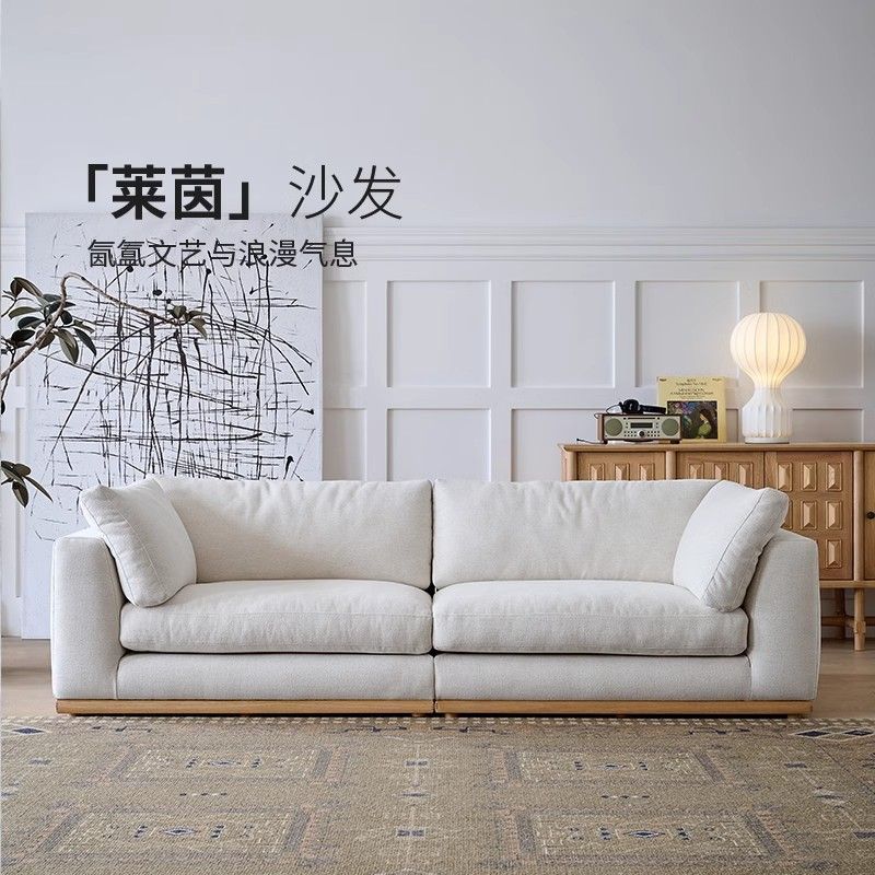 라인 소파 조용한 여름 리넨 소파 스트레이트 로우 로그 이동식 및 세척 가능한 코튼 리넨 패브릭 다운 소파스토어 가기