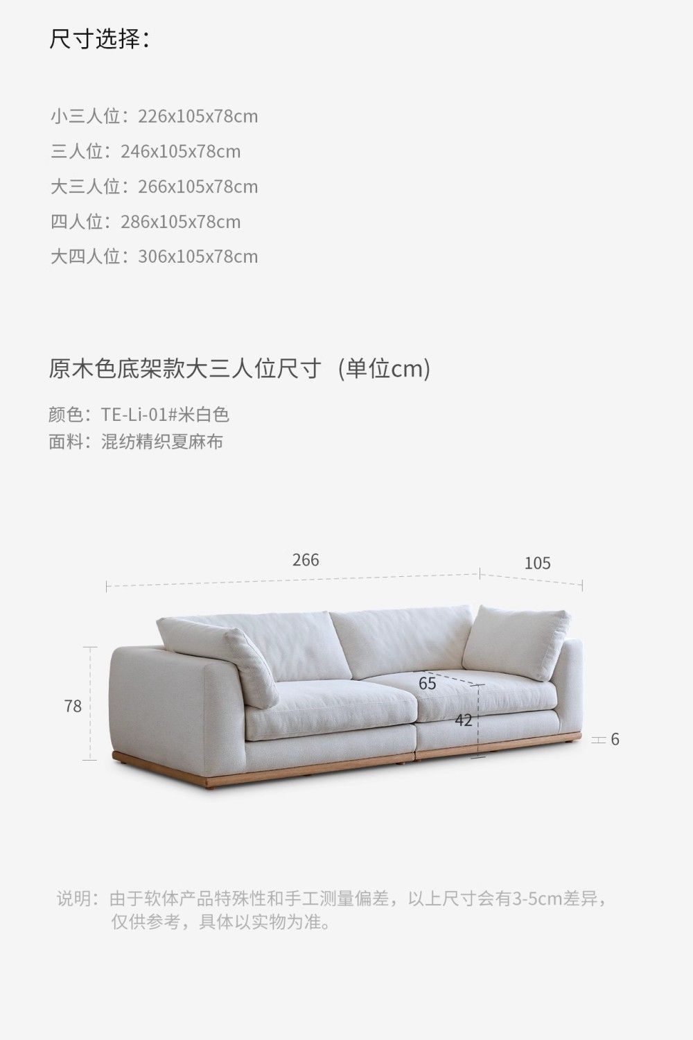 라인 소파 조용한 여름 리넨 소파 스트레이트 로우 로그 이동식 및 세척 가능한 코튼 리넨 패브릭 다운 소파