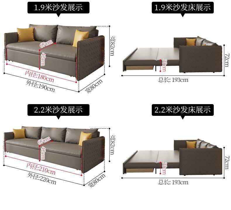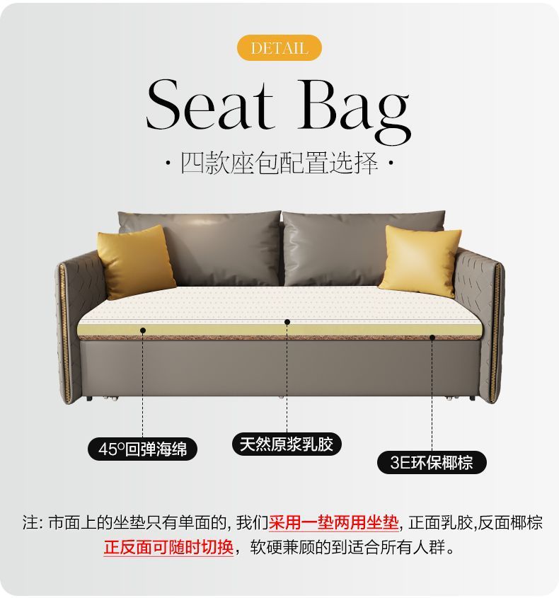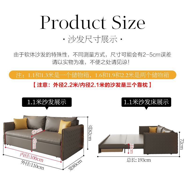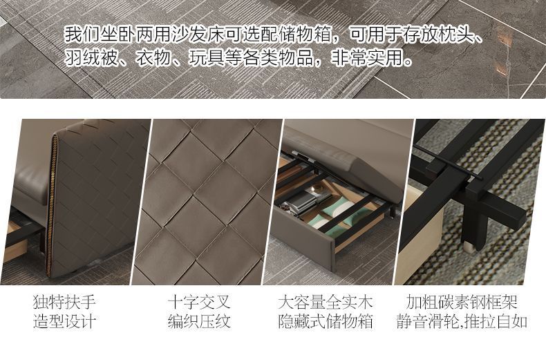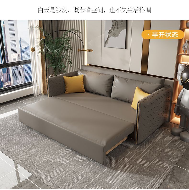 가죽 아트 라이트 럭셔리 소파 침대 접이식 이중 사용 두 배 사람 다기능 현대 거실 서랍 저장 작은 아파트