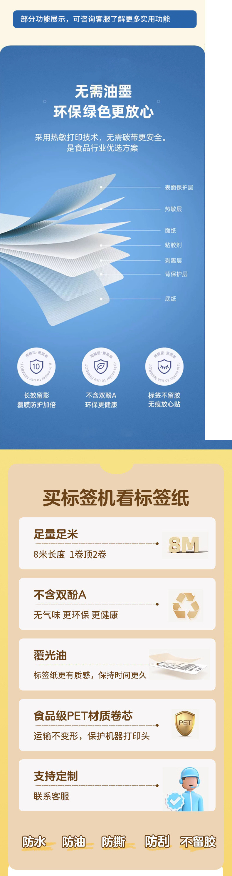 • A50 [다양한 크기의 용지용 판지가 있는 용지] - 프린터 + 라벨 용지 5롤 [50*80mm]