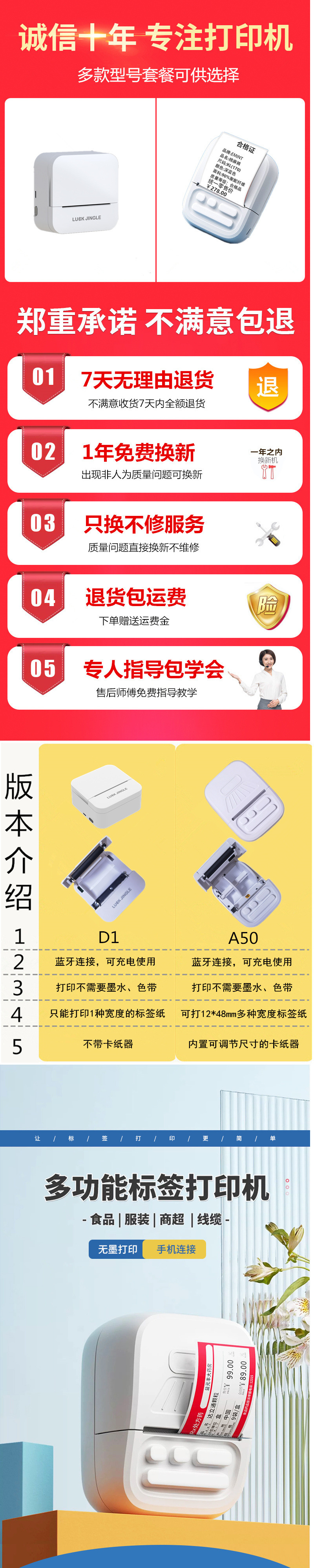 • A50 [다양한 크기의 용지 걸림 장치가 있는 용지 사용 가능] - 프린터 + 라벨 용지 1롤 [40*30mm]