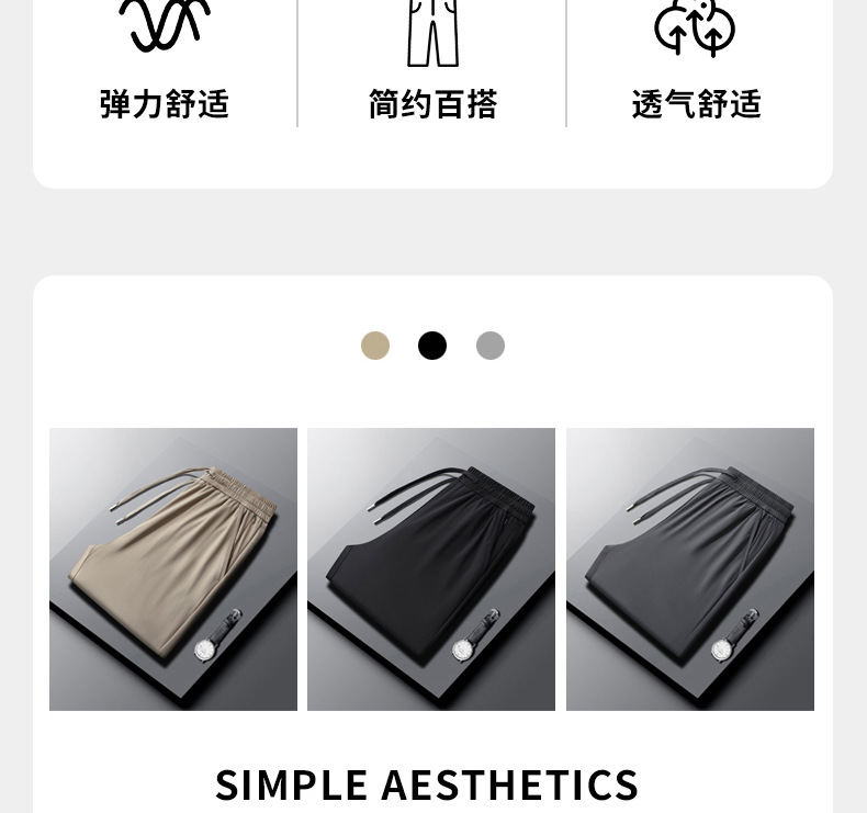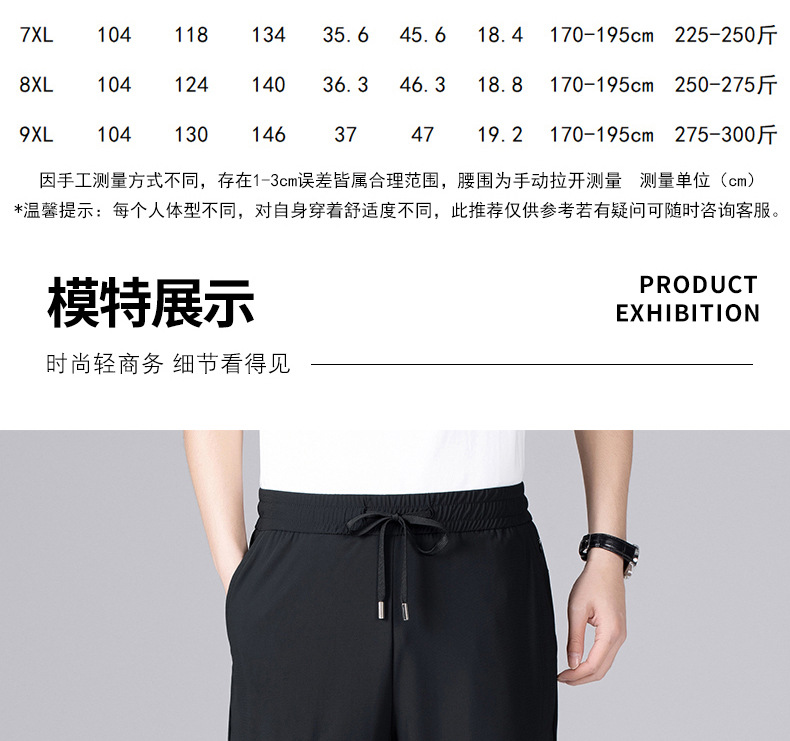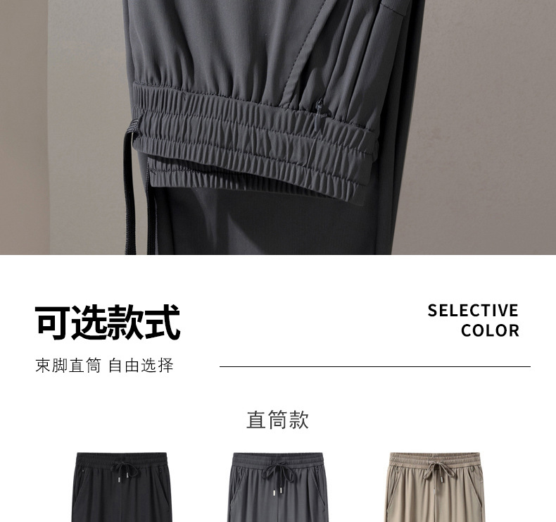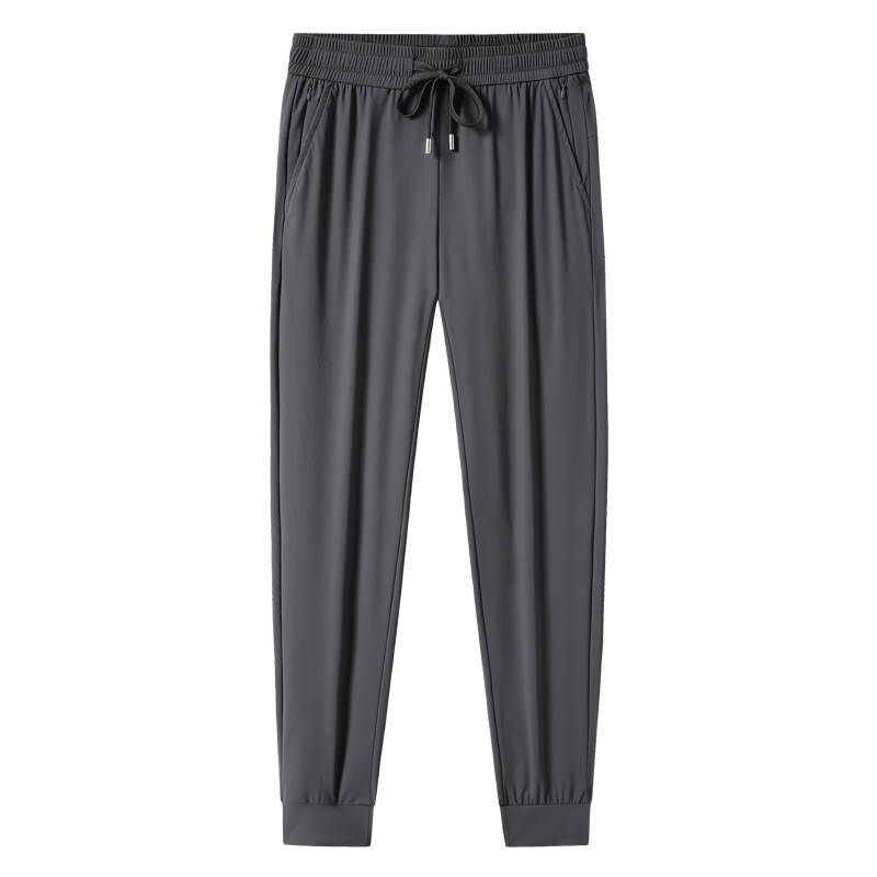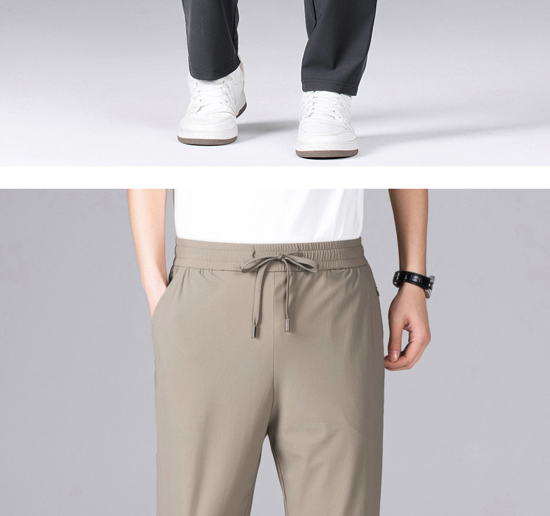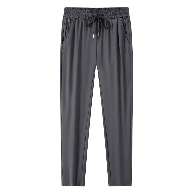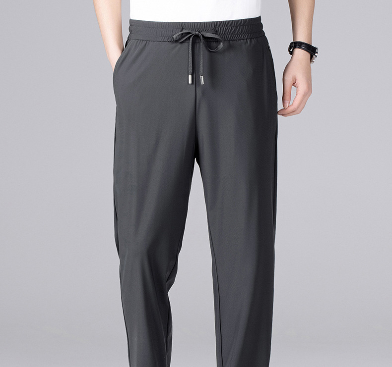 여름 새로운 간단한 캐주얼 바지 남자 올매치 탄성 얇은 아이스 실크 스포츠 남자 바지 플러스 사이즈