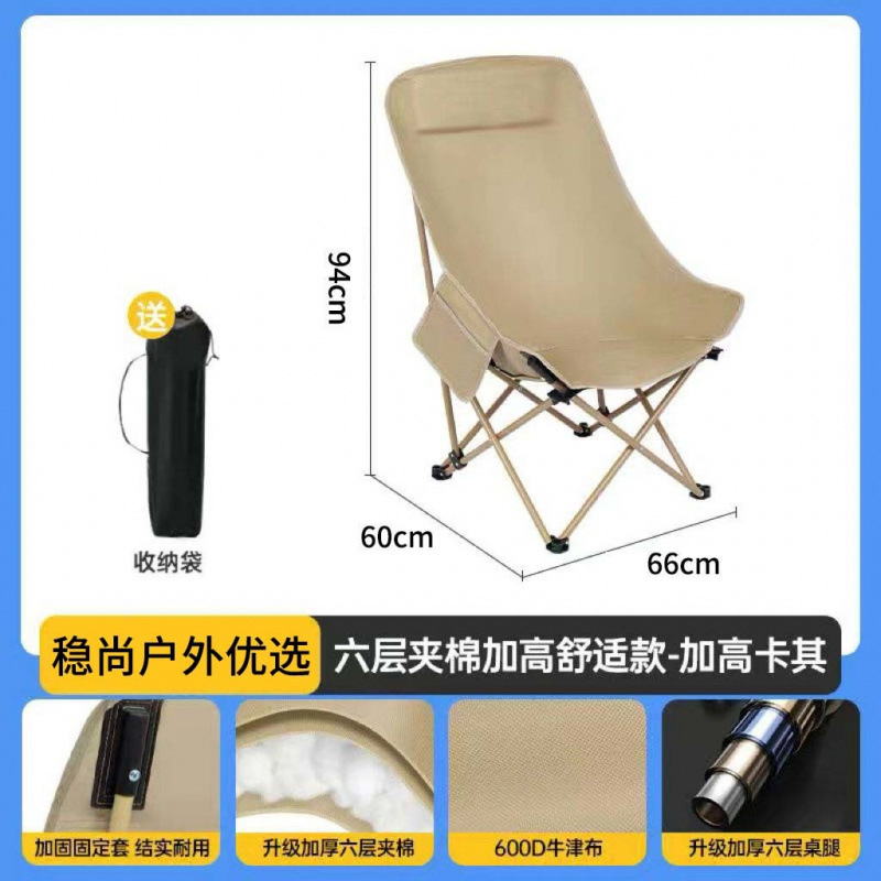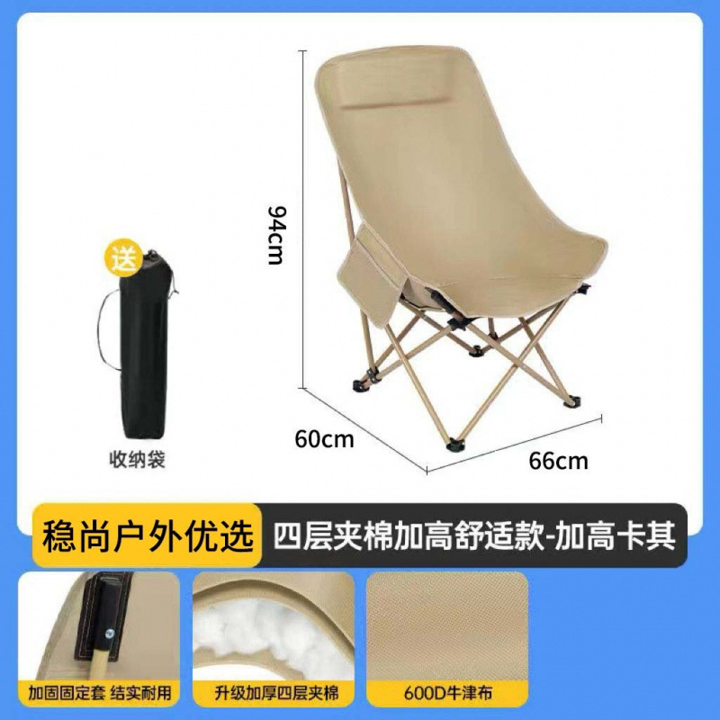 • [카키 - 등받이 높이 90cm] 두꺼워진 머리받침 - 6겹 면 버전 [내하중 250kg - 보관 가방 포함]