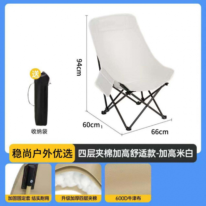 • [오프화이트 - 등받이 높이 90cm] 두꺼운 파이프 - 4겹의 두꺼운 버전 [내하중 150kg - 보관 가방 포함]