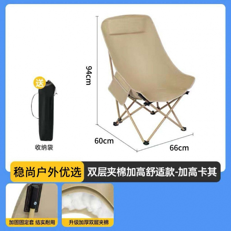 • [카키 - 등받이 높이 90cm] 두꺼워진 머리받침 - 더블 레이어 기본 모델 [내하중 100kg - 수납가방 포함]