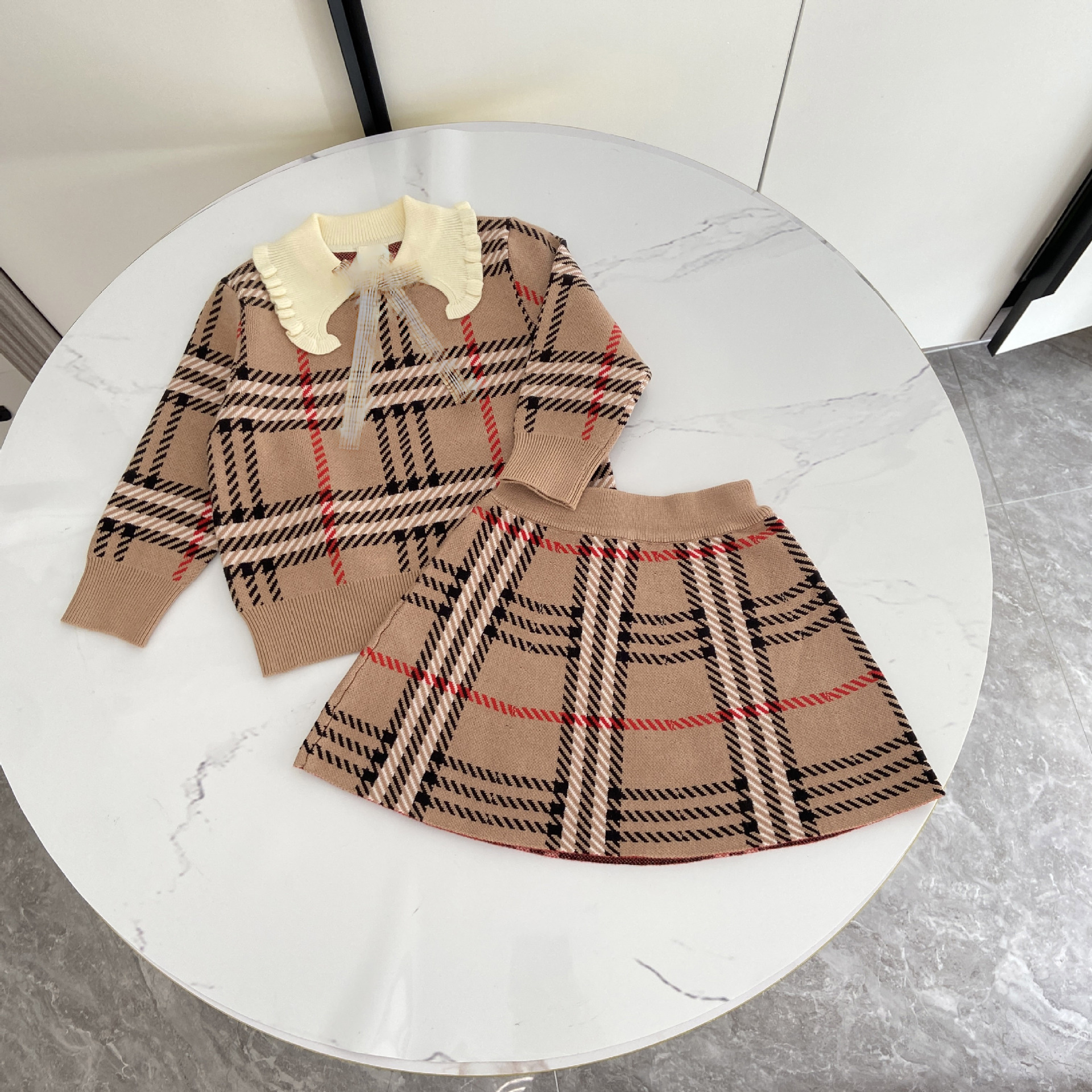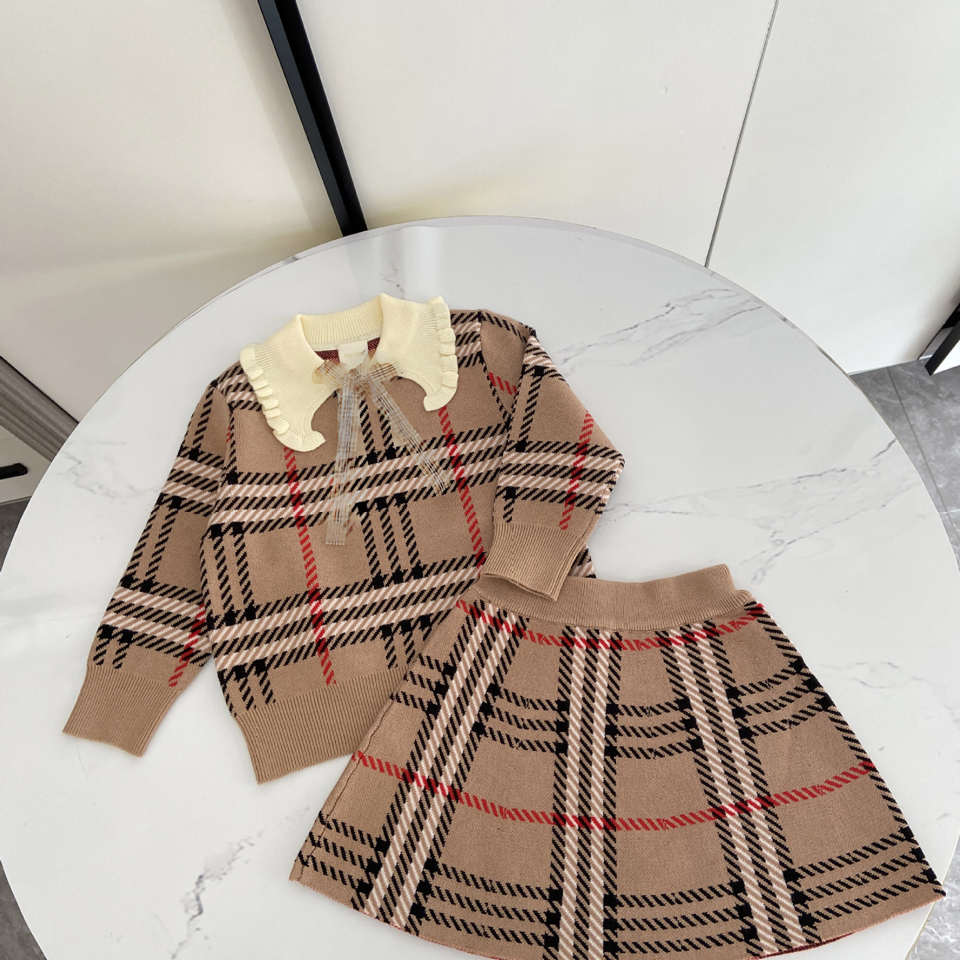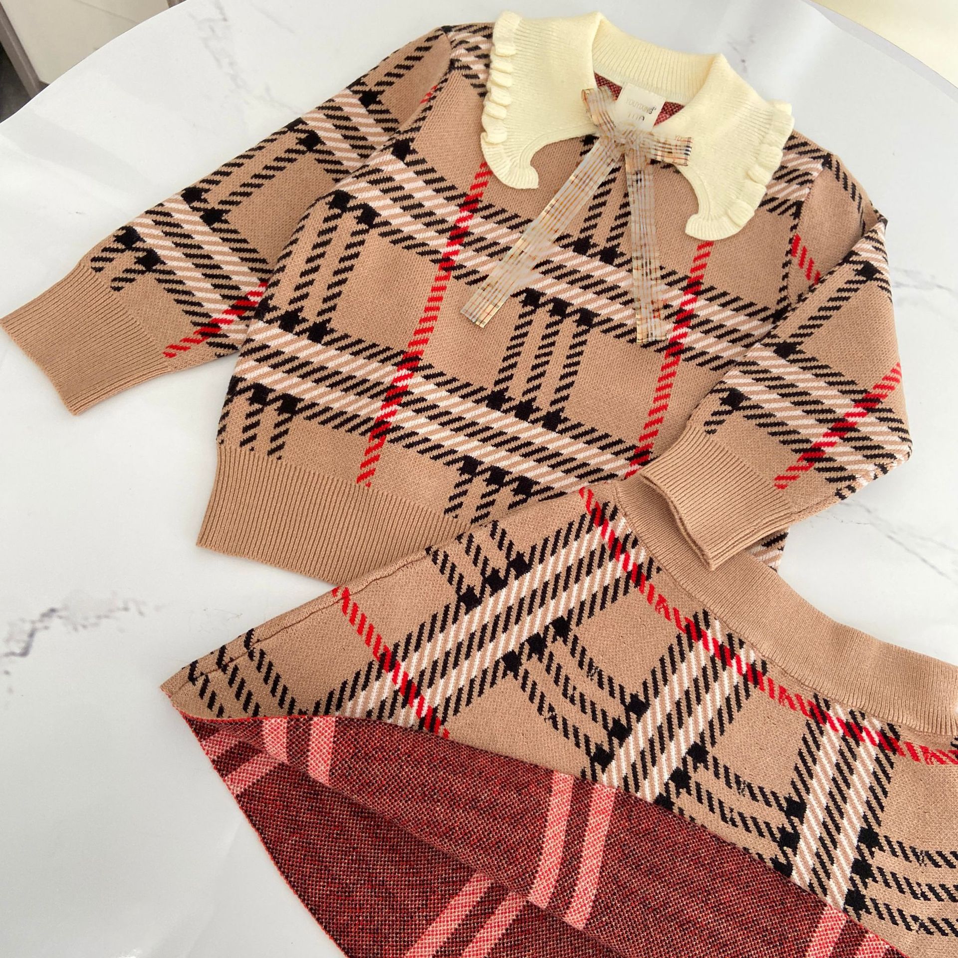2025 봄 신작 아동용 스웨터 스커트 소녀 대학 스타일 라펠 스웨터 스커트 정장 유행