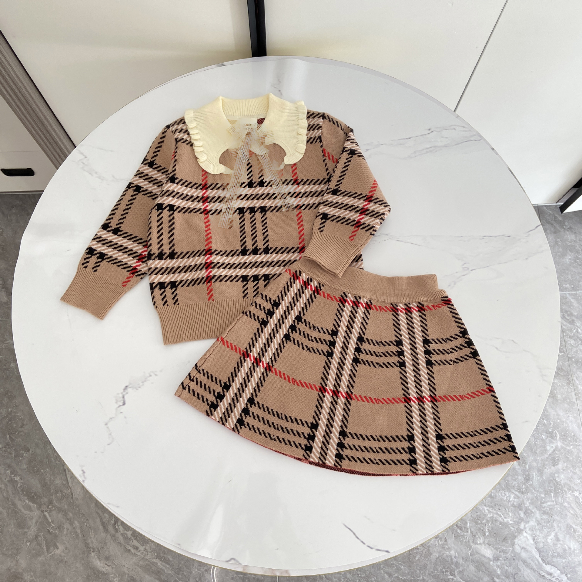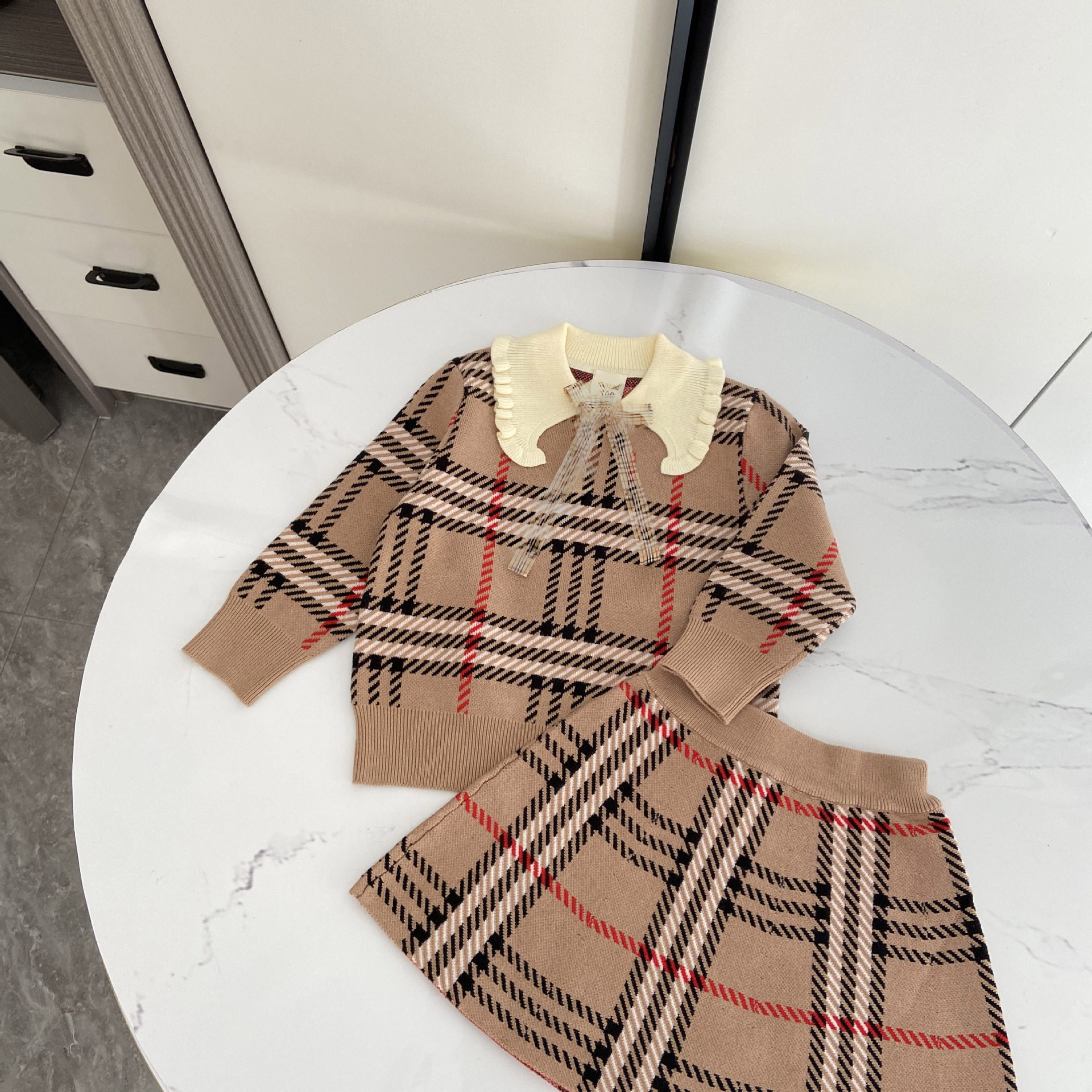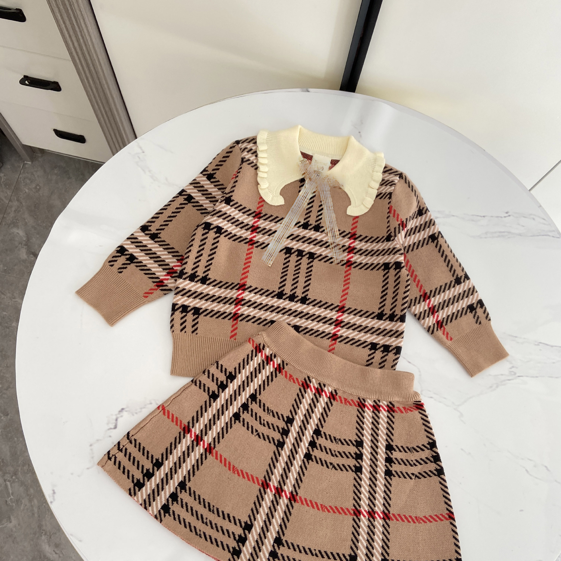 2025 봄 신작 아동용 스웨터 스커트 소녀 대학 스타일 라펠 스웨터 스커트 정장 유행