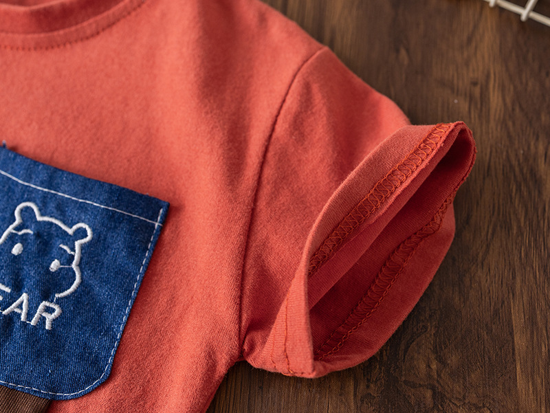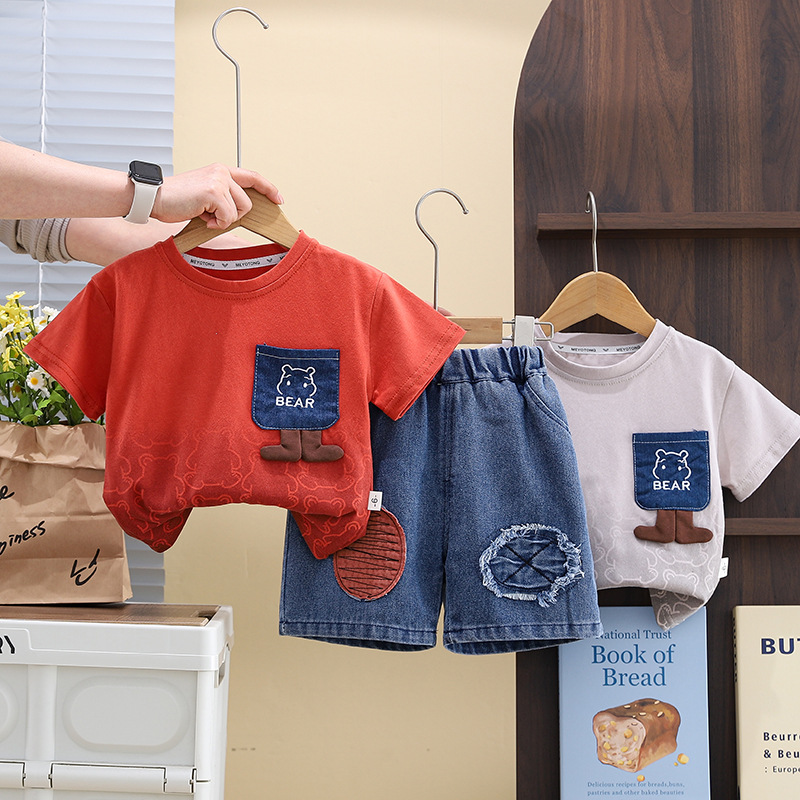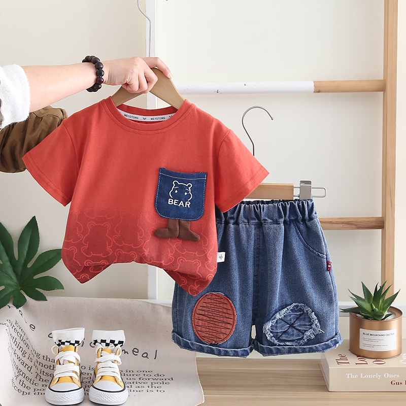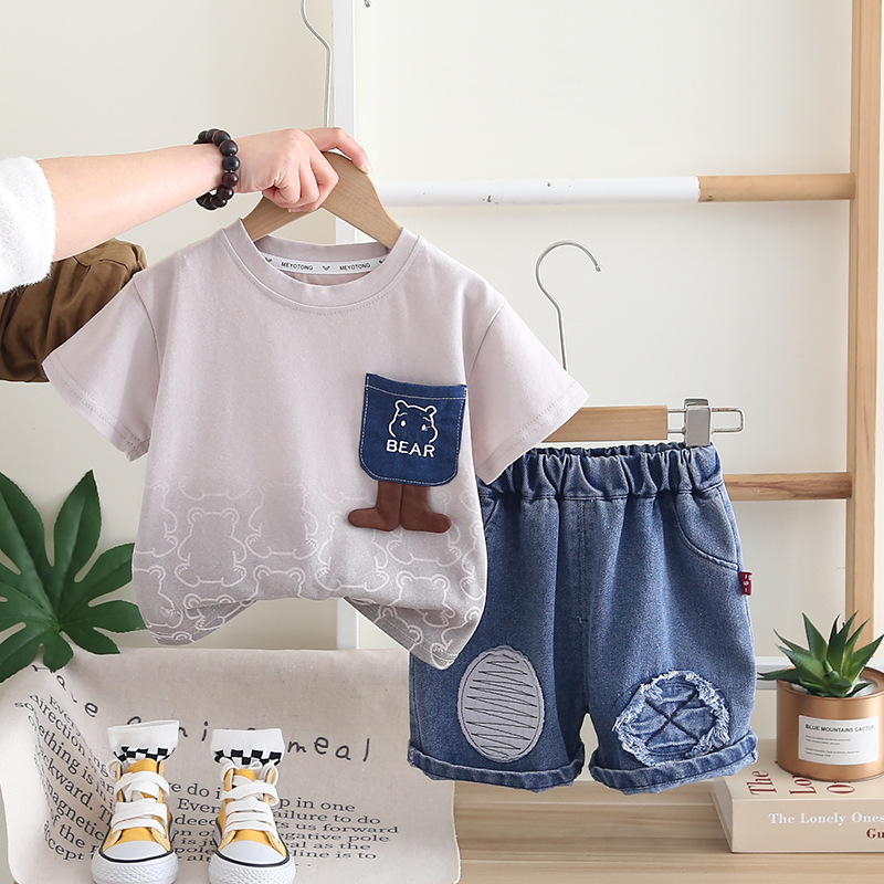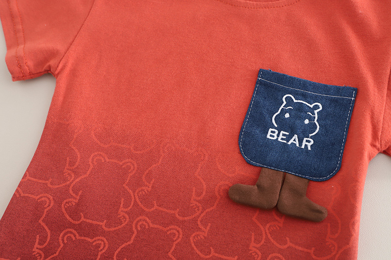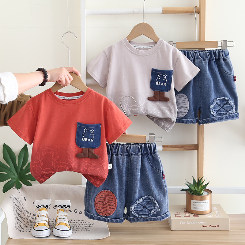 어린이 세트 소년 만화 곰 반팔 여름 착용 남자 바오양 공기 튀김 거리 캐주얼 반바지 아기의 여름 아동복