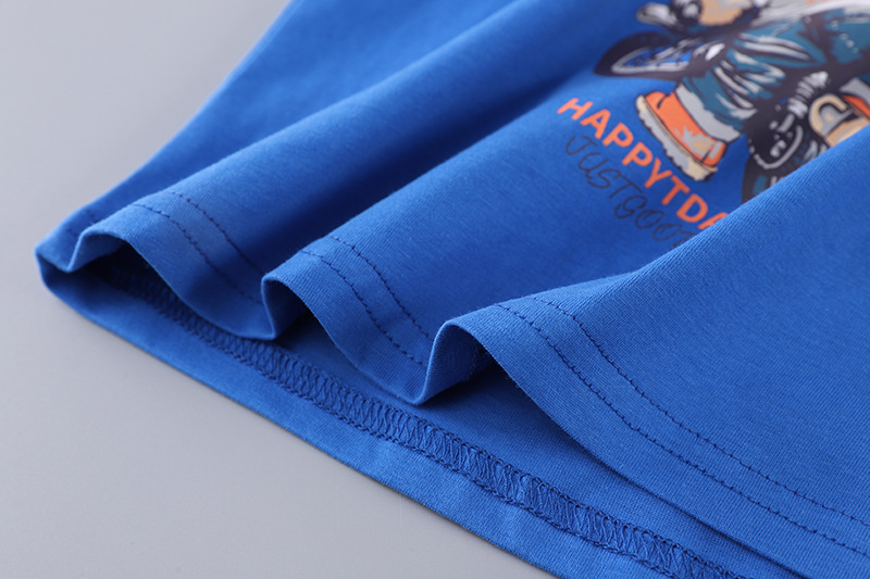 2025 새로운 여름 한국 아동복 소년 강아지 오토바이 유아 짧은 소매 두 반바지 세트 패션스토어 가기