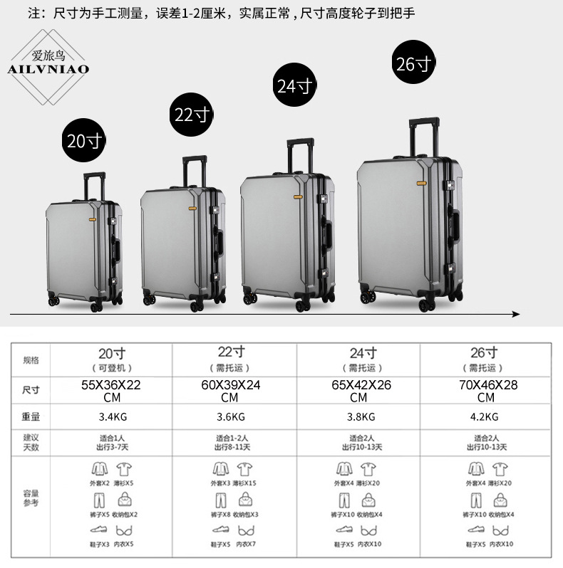 남성과 여성을위한 수하물 탑승 상자 대용량 유니버설 휠 26 인치 학생 트롤리 케이스 20 인치 비밀번호 상자 가방스토어 가기