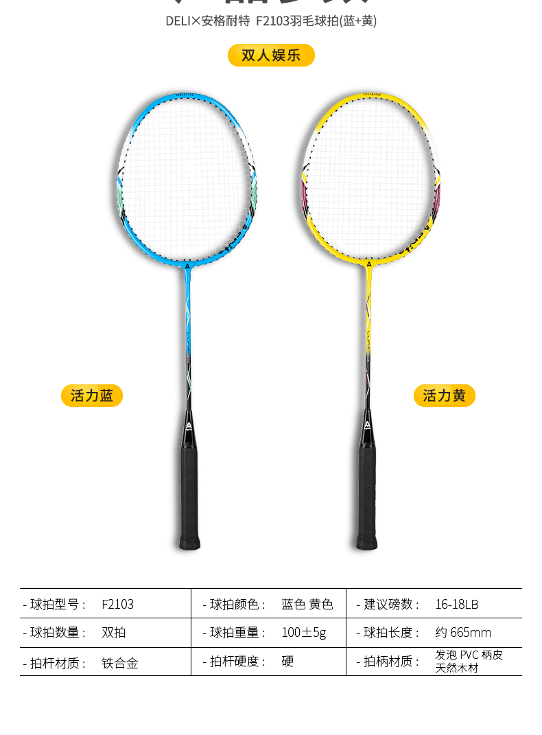 Deli Angnet F2103 복식 배드민턴 라켓, 배드민턴 홈로드 커플 훈련 라켓 3 개 발송스토어 가기